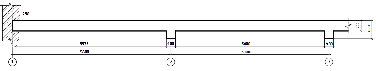 Высота и ширина второстепенных балок приняты: hв.б. = (1/12 … 1/20)∙l2 = 1/15 ∙ 5800 = 400 мм; bв.б. = (0,3…0,5)∙hв.б. = 0,3∙400 = 120 мм = 200 мм
