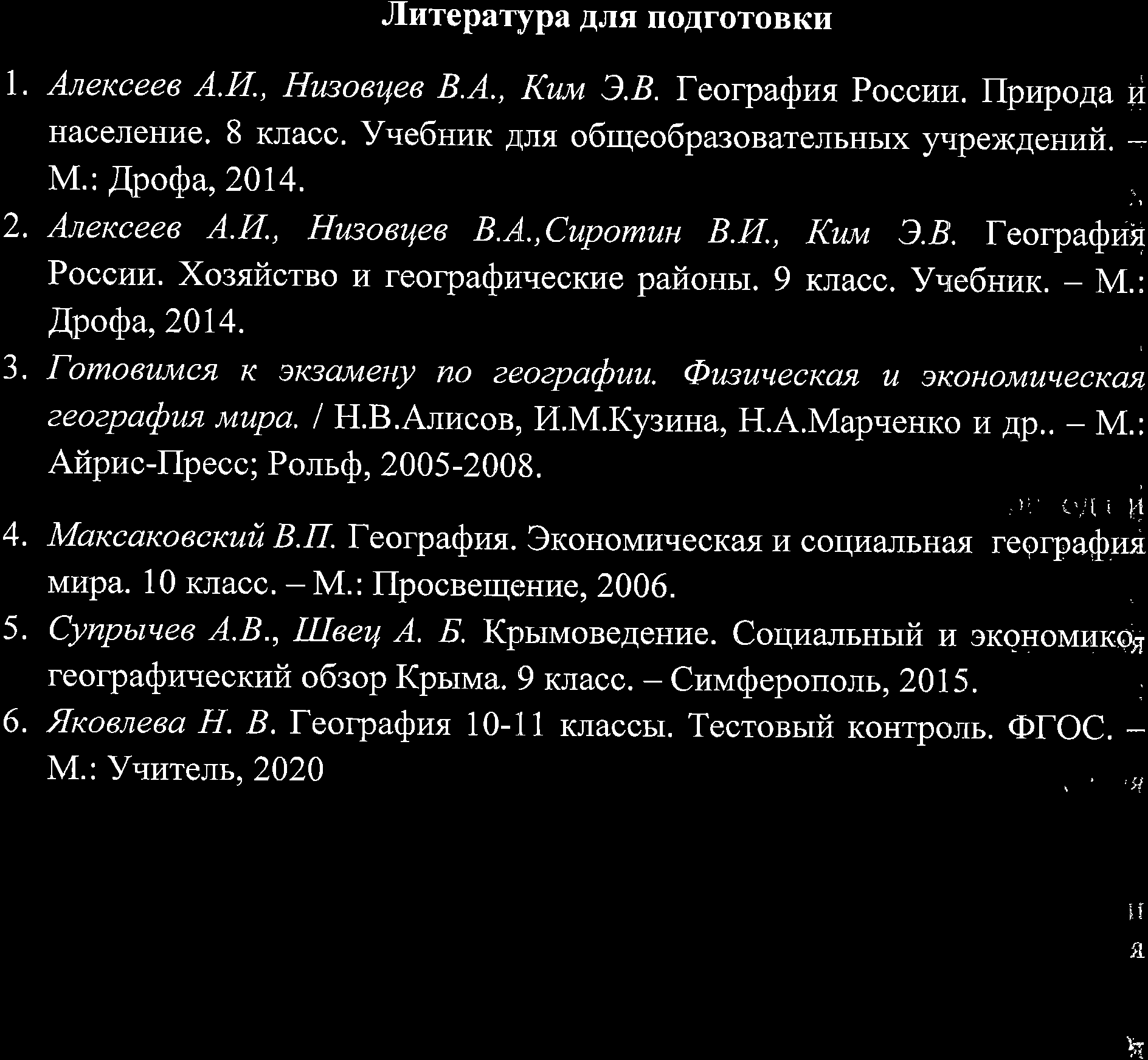 - Алексеев А.И., Николина В.В., Ким Э.В. География России. Природа и население. 8 класс. Учебник для общеобразовательных учреждений. — М.: Просвещение, 2014.