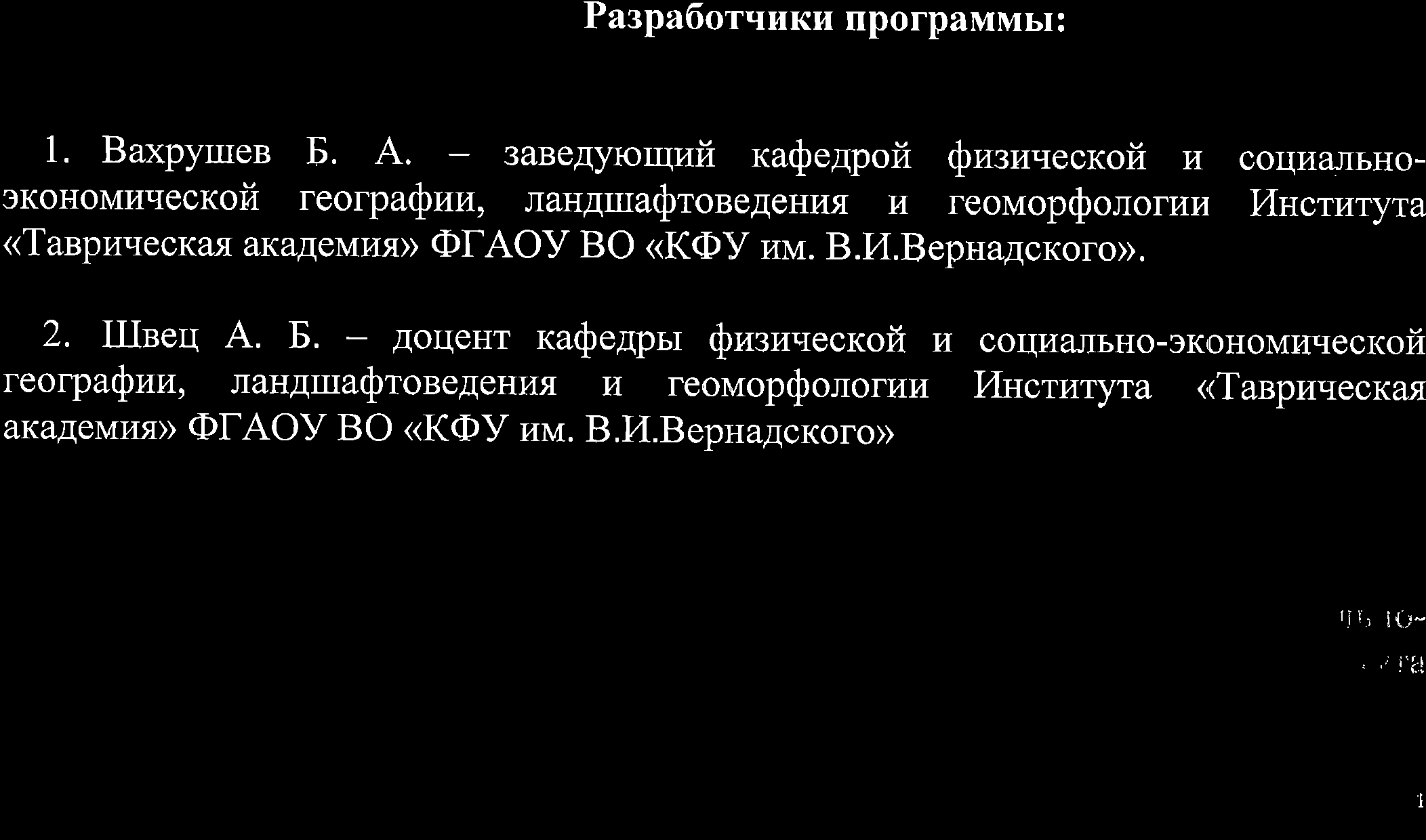 - Швец А. Е. — доцент кафедры физической и социально-экономической географии, ландшафтоведения и геоморфологии Института «Таврическая академия» ФГАОУ ВО «КФУ им. В.И. Вернадского».