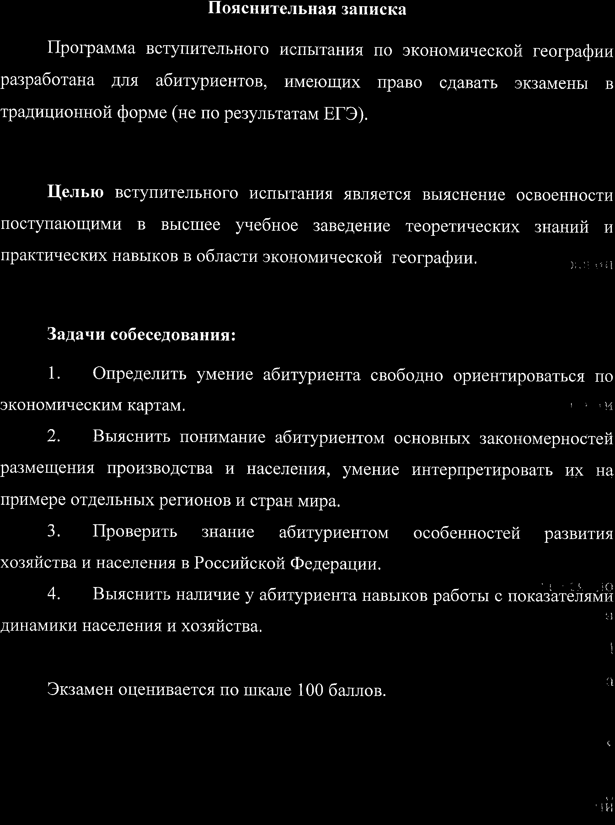 - МЕТОДИЧЕСКИЕ УКАЗАНИЯ И ПРОГРАММА вступительного испытания по предмету «ЭКОНОМИЧЕСКАЯ ГЕОГРАФИЯ»