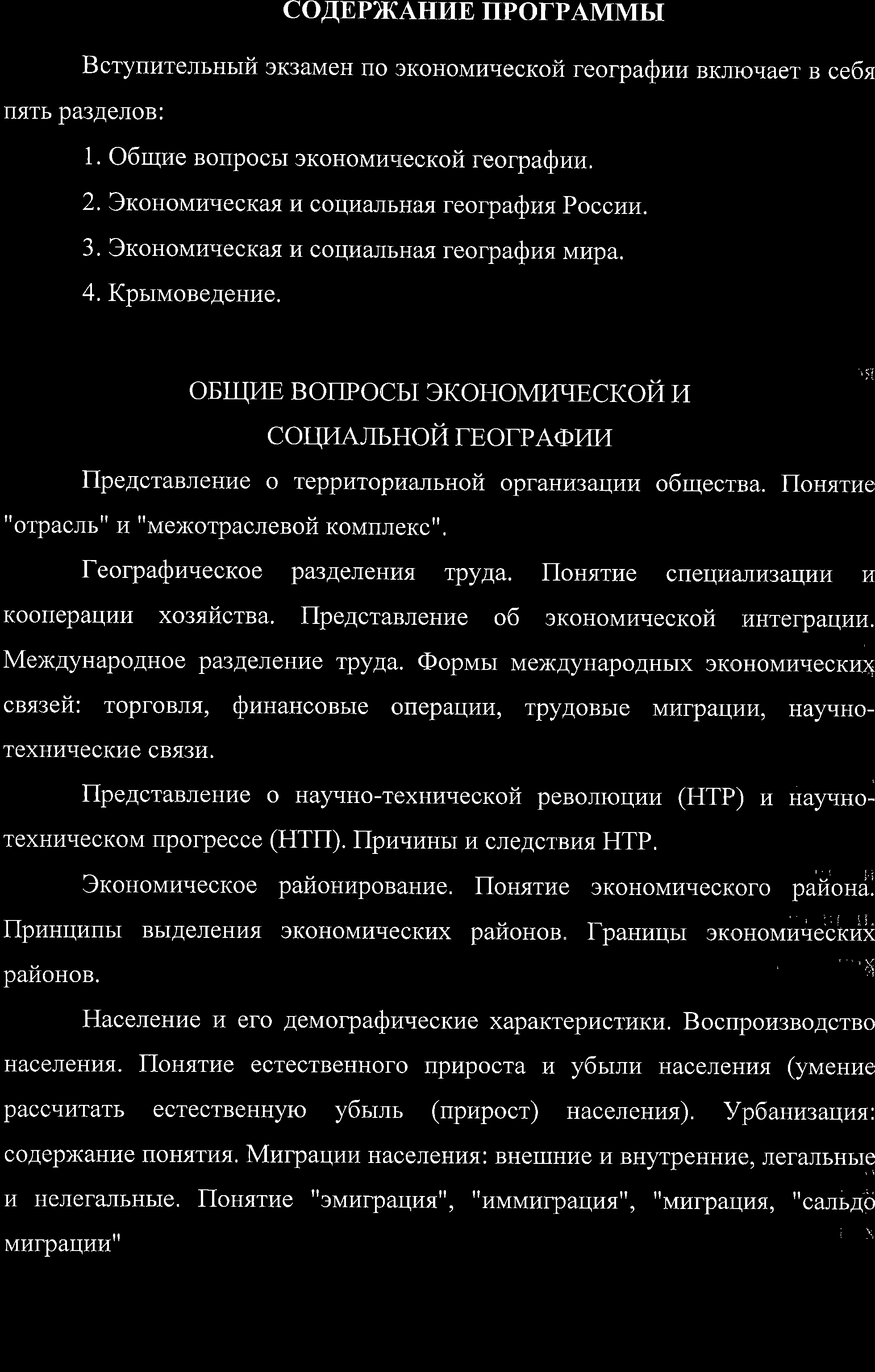 Программа вступительного испытания по экономической географии разработана для абитуриентов, имеющих право сдавать экзамены в традиционной форме (не по результатам ЕГЭ).