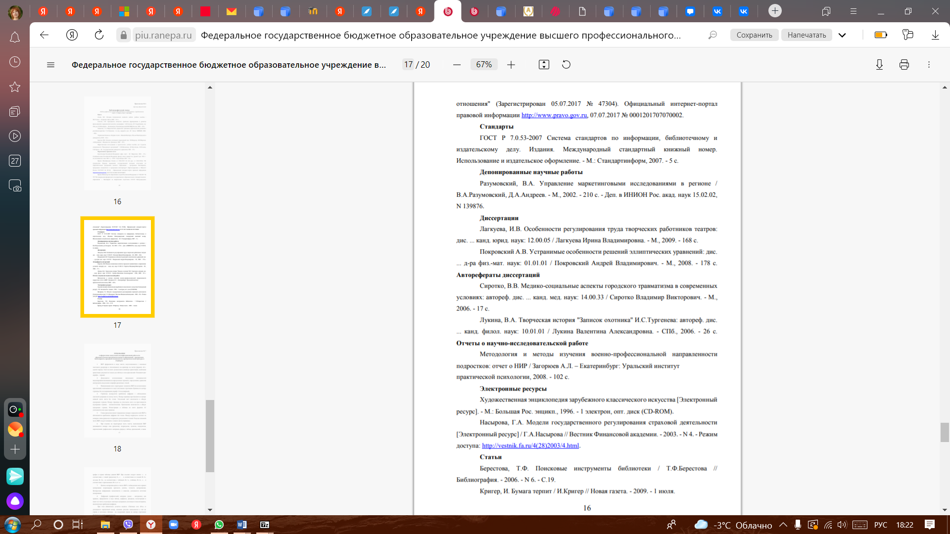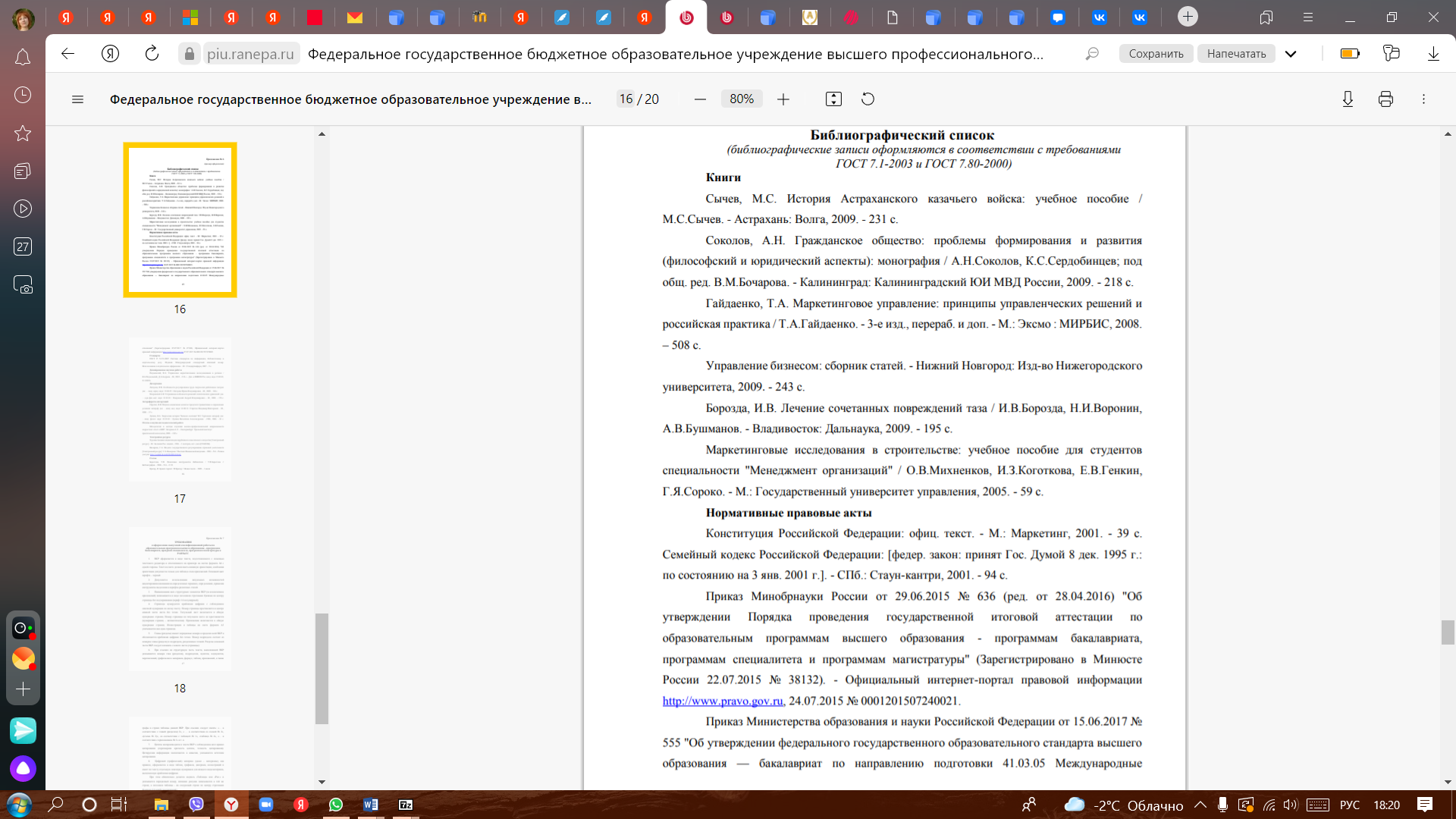 Библиографический список должен включать не менее 20 источников. Обратите внимание на следующие рекомендации: