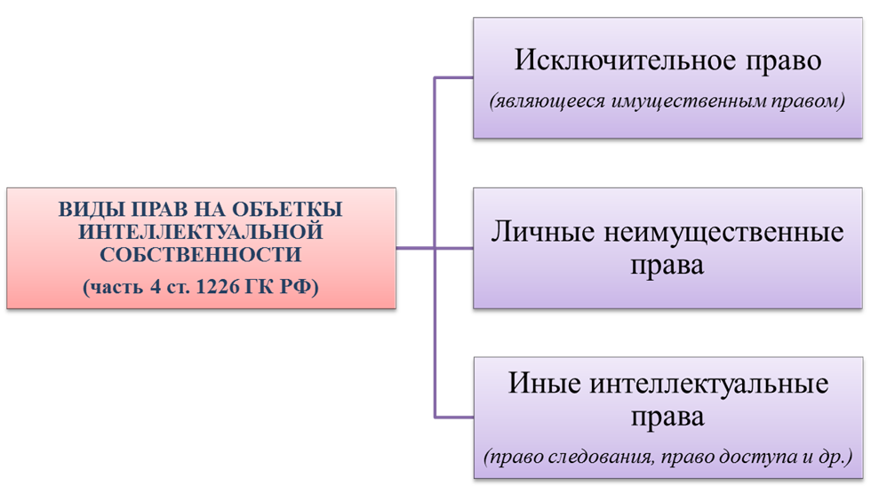 Рис.1 Основные виды прав на объекты интеллектуальной собственности.