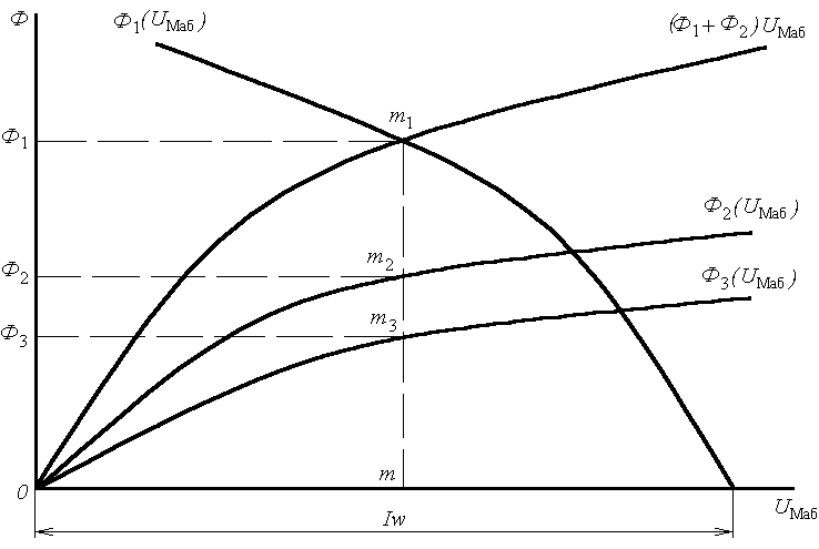 ) одним нелинейным сопротивлением, характеристикой которого и является кривая Ф2+3 = f(UMаб).