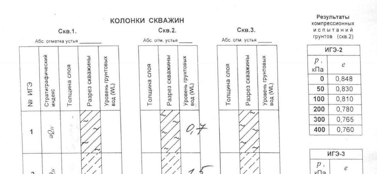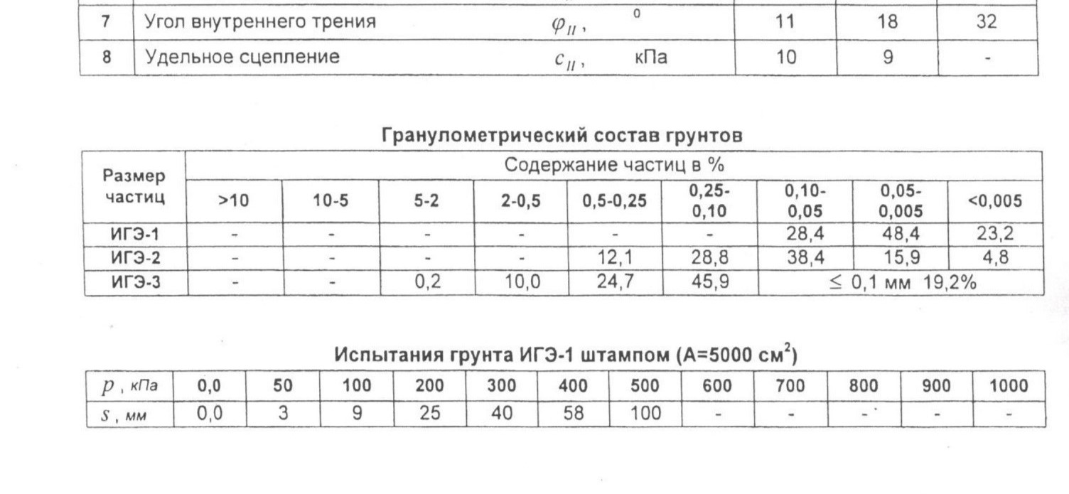 | № | Характеристики | Обоз. | Ед. изм. | ИГЭ-1 | ИГЭ-2 | ИГЭ-3 |