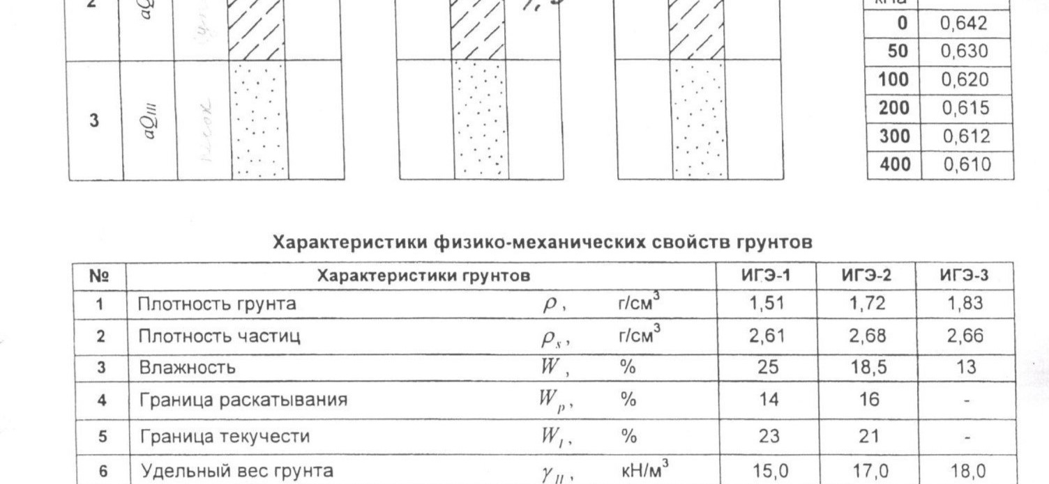 | 8 | Плотность сухого грунта | ρd | г/см3 | 1,21 | 1,45 | 1,62 |