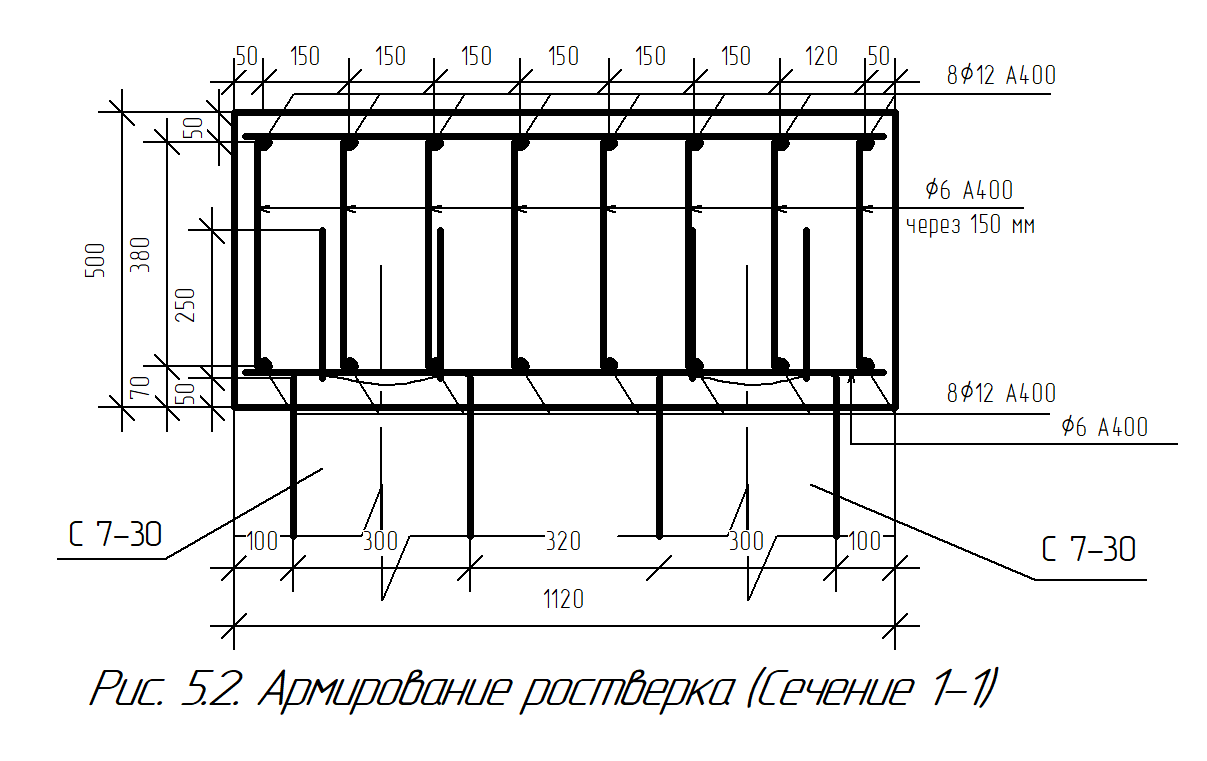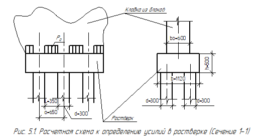 Расчет и конструирование ростверка. Сечение 1-1