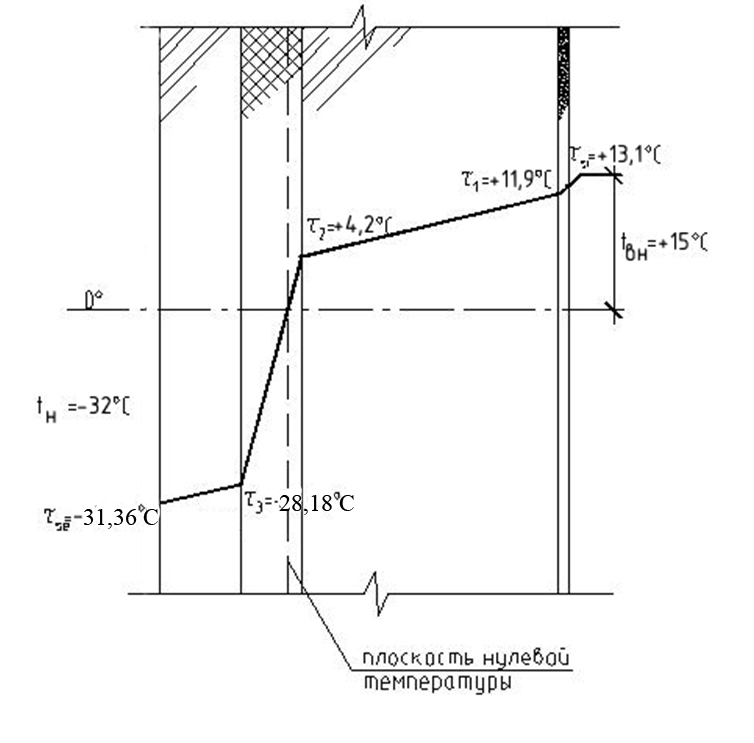 Для того чтобы определить значение температур на границах конструктивных слоев воспользуемся формулой: τ = tвн — (tвн — tн) · (Rвн + ΣR) / Rоусл; (2.1)