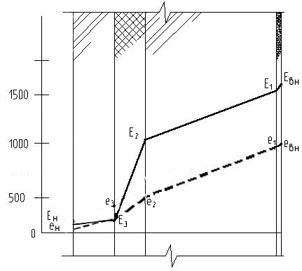 По таблице (М табл.1.10.1 и табл.1.10.2) принимаем: Eвн = 1577 Па; E1 = 1508 Па; E2 = 1109 Па; E3 = 235 Па; Eн = 197 Па;