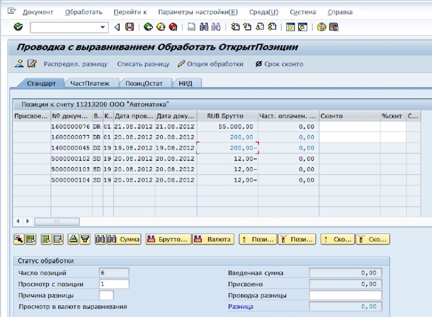 Таким образом, при использовании бизнес-процесса выравниваются открытые позиции по дебету счета, сопоставляются с открытыми позициями по кредиту счета. В результате операции выравнивания в системе создан документ выравнивания.