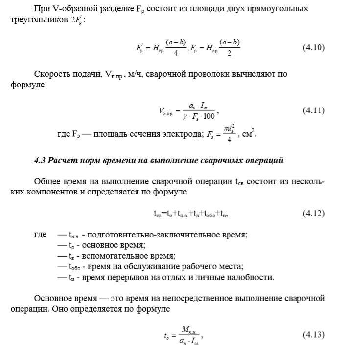 Время перерывов на отдых и личные надобности зависит от положения, в котором сварщик выполняет работы. При сварке в удобном положении: tn=0,07*tо=0,27 час