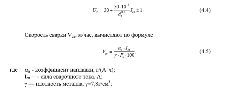 где tэ — время на смену одного электрода; Vэ — объем одного электрода; V = (d2 /4) Lэл =4396 мм3=4,4 см3; Lэл=350 мм, d=4мм; Fн.Lш — объем наплавленного металла.