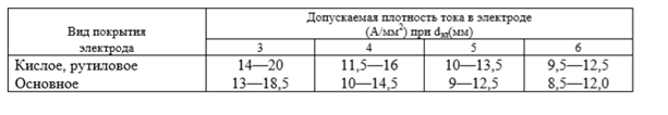 Сварочный ток определяем по формуле: j=13 А/мм2 — плотность тока на электроде таблице 2.2.