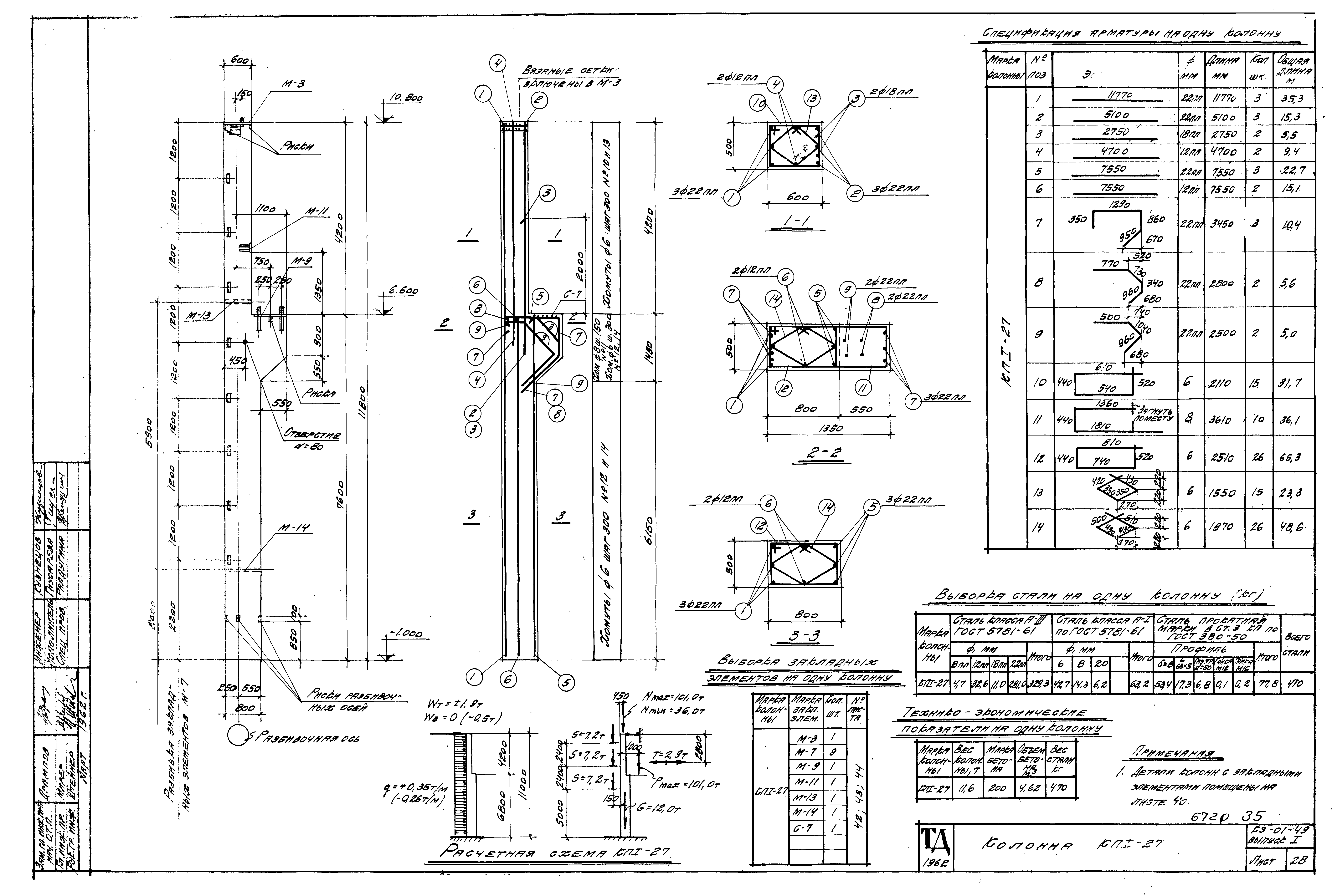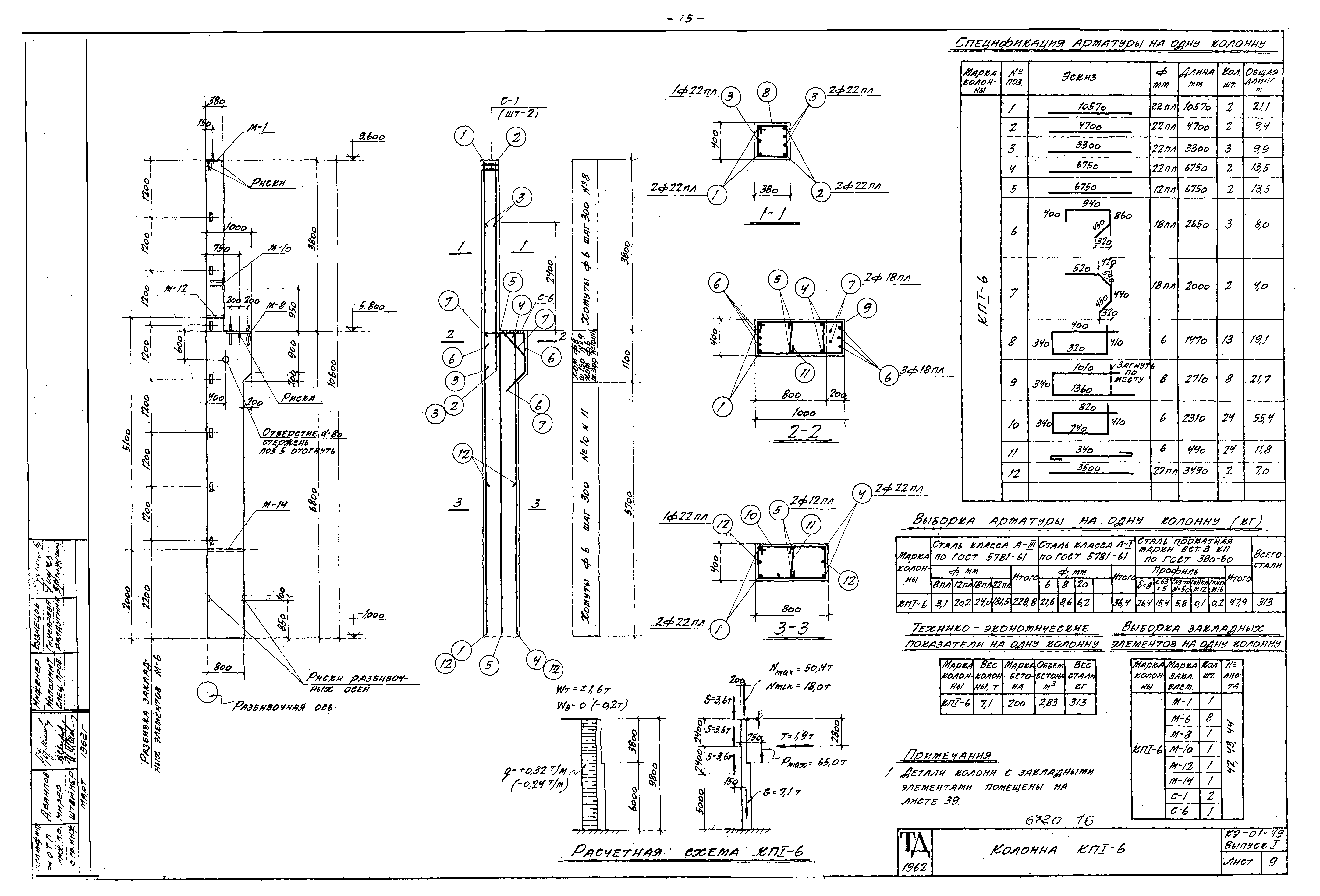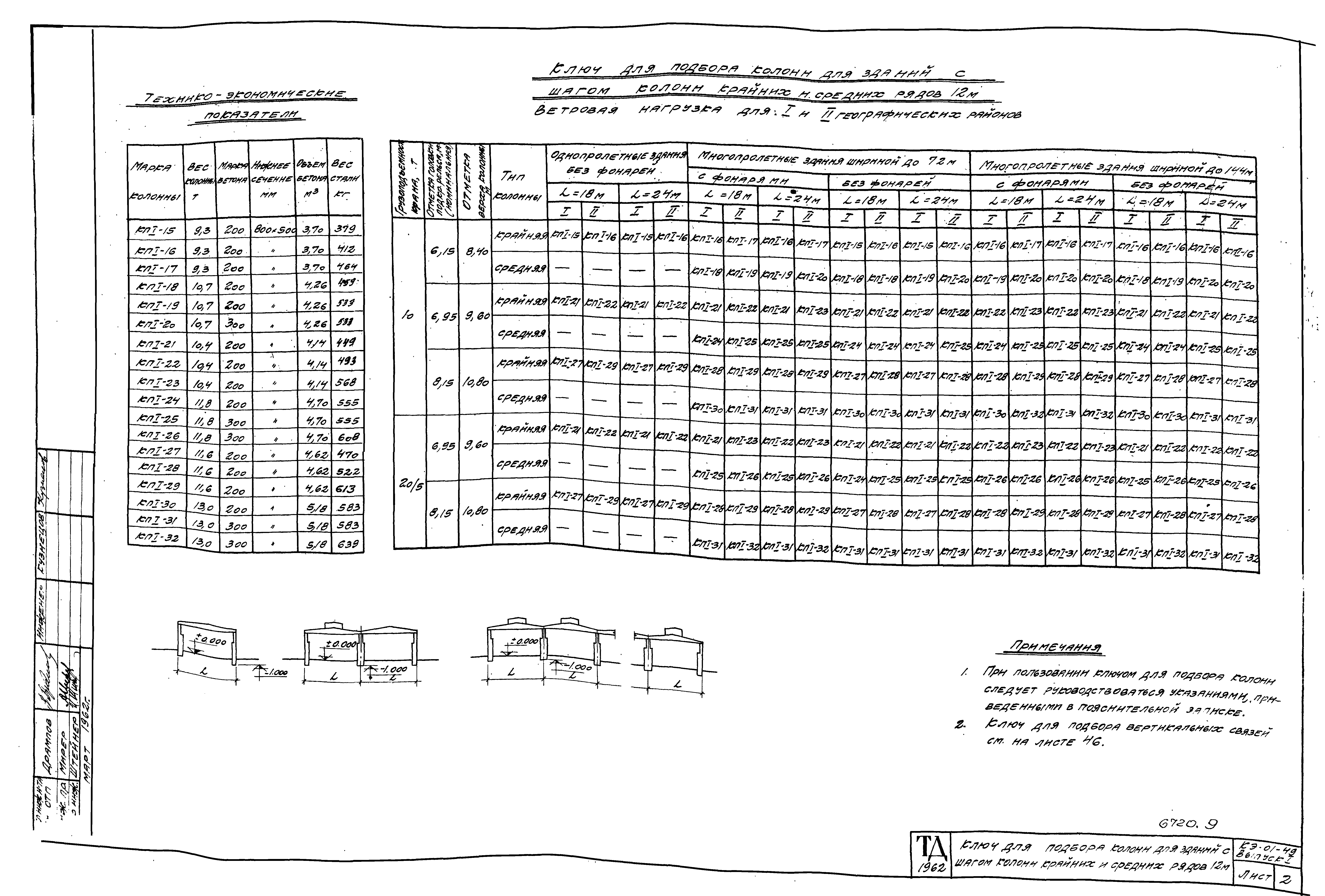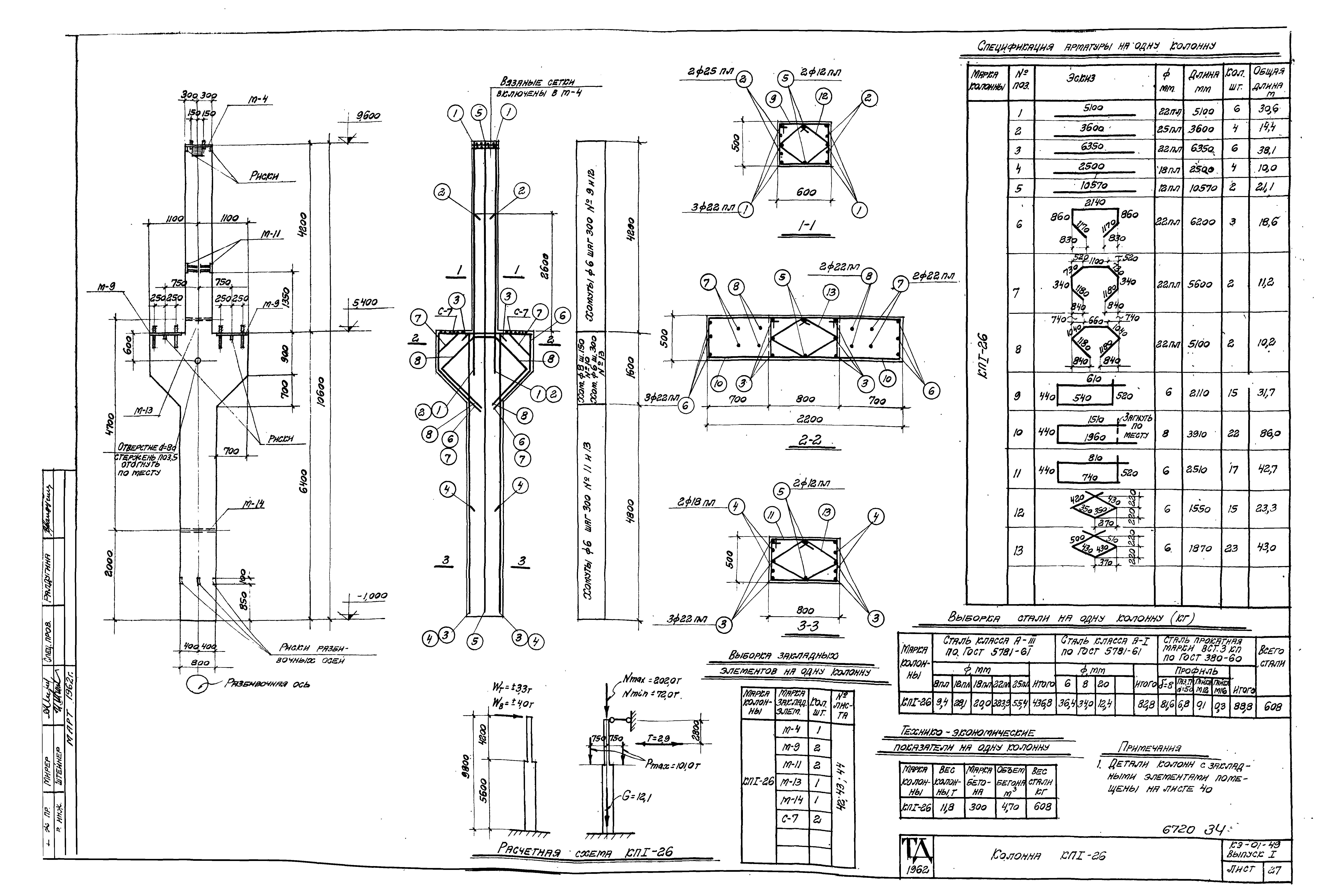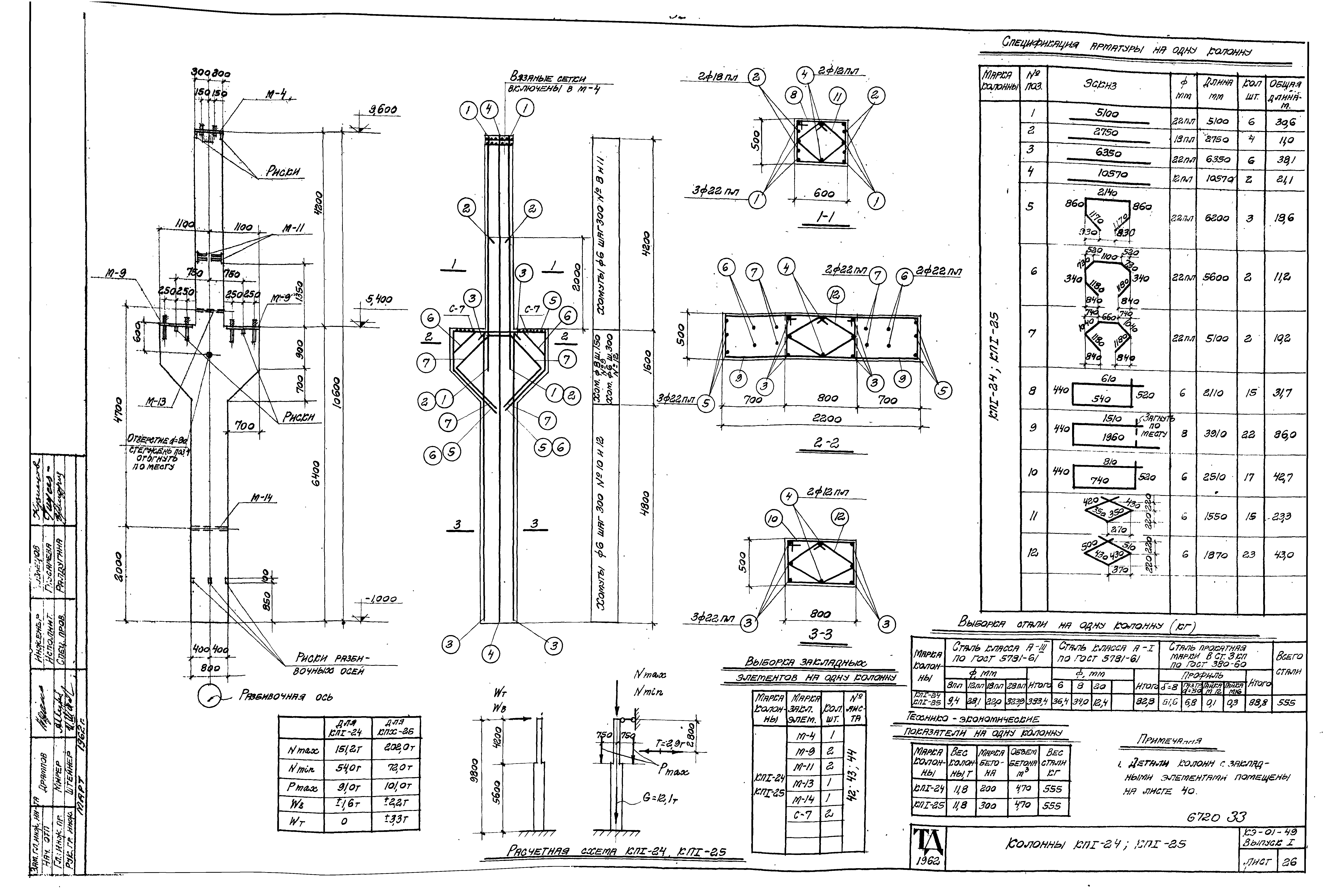 Колонны разработаны в соответствии с «Типовыми конструкциями зданий для промышленного строительства», утвержденными Госстроем СССР приказом №490 от 15 сентября 1961 г. Колонны рассчитаны на нагрузки в соответствии с главой СНиП II-А.11-62 «Нагрузки и воздействия».