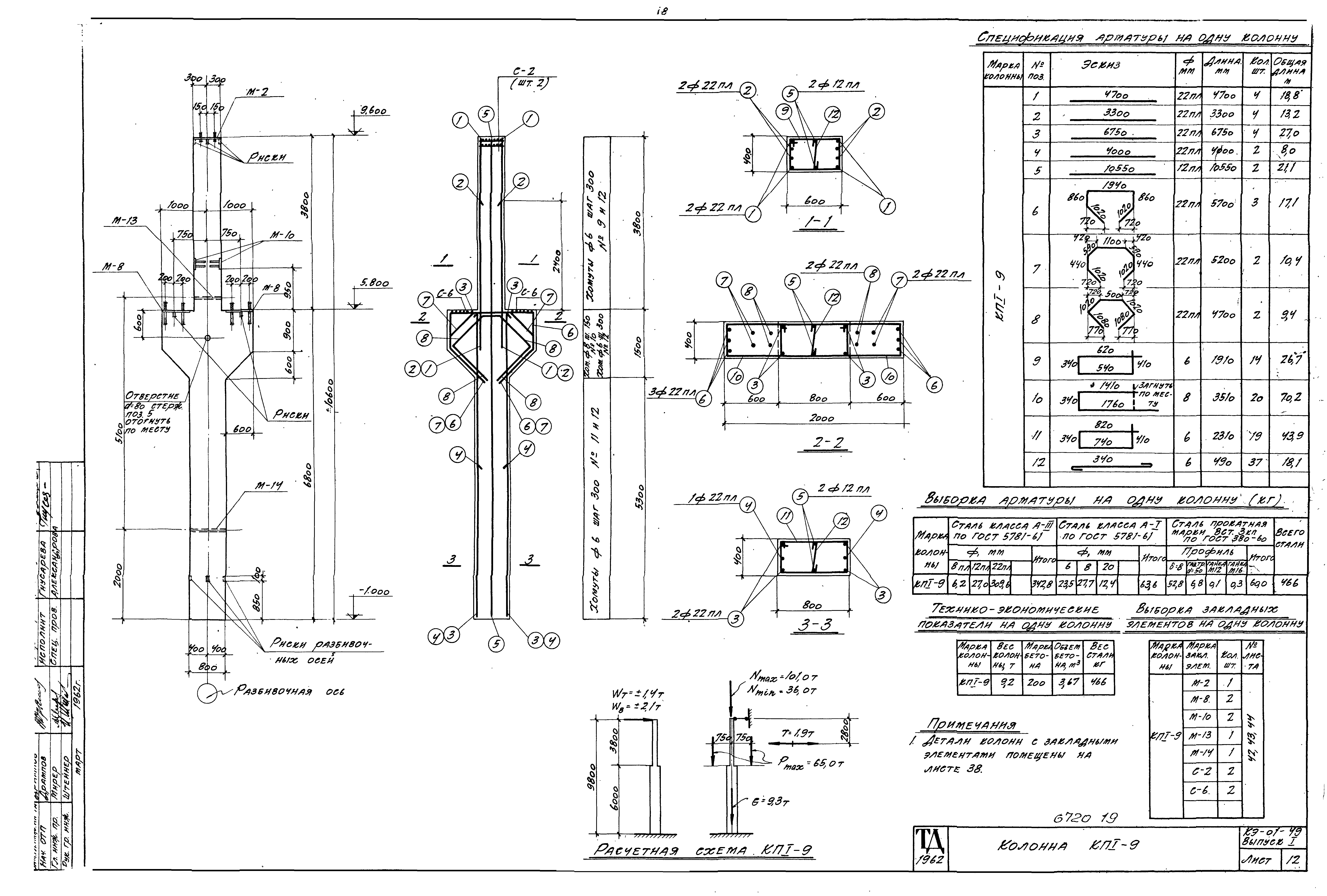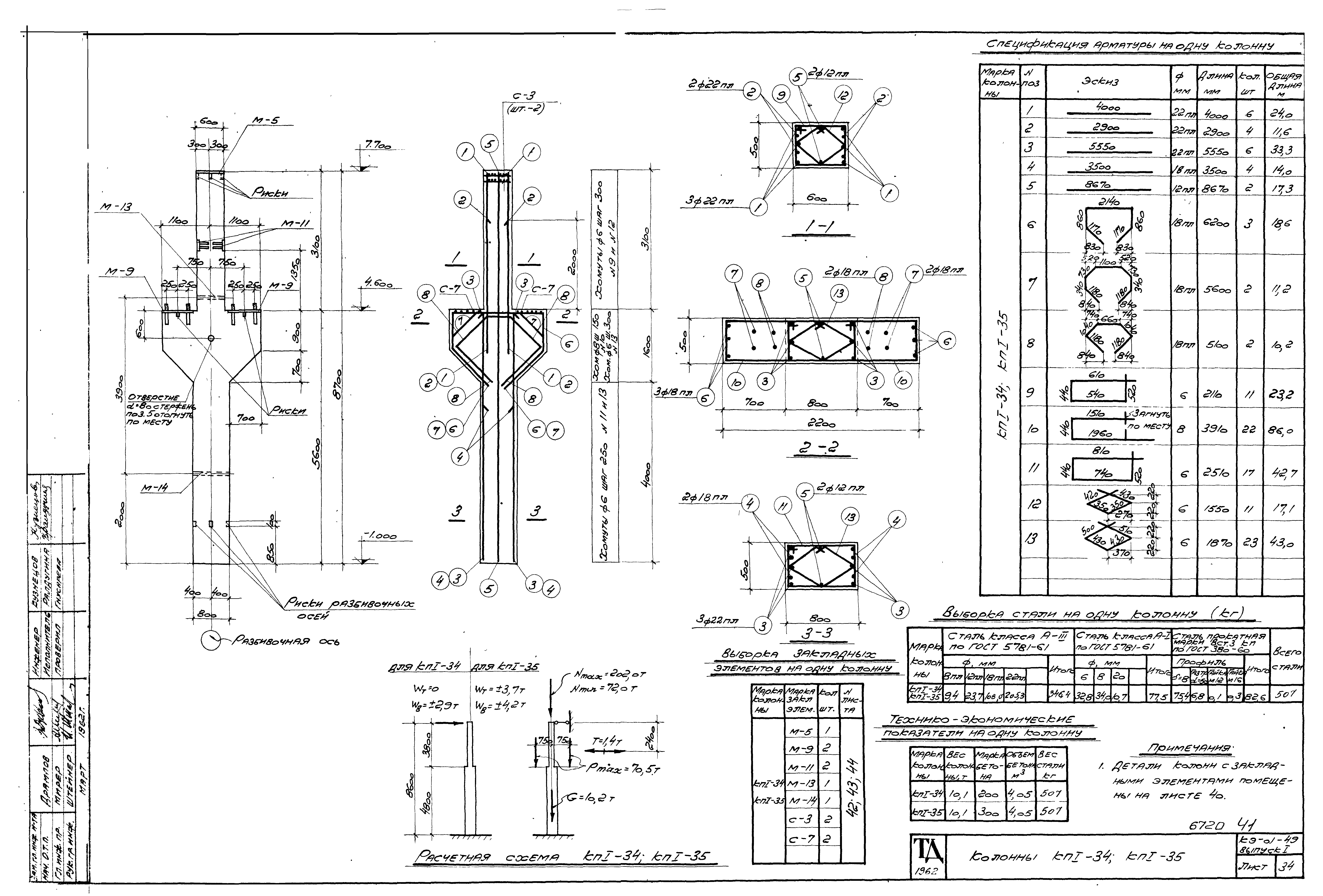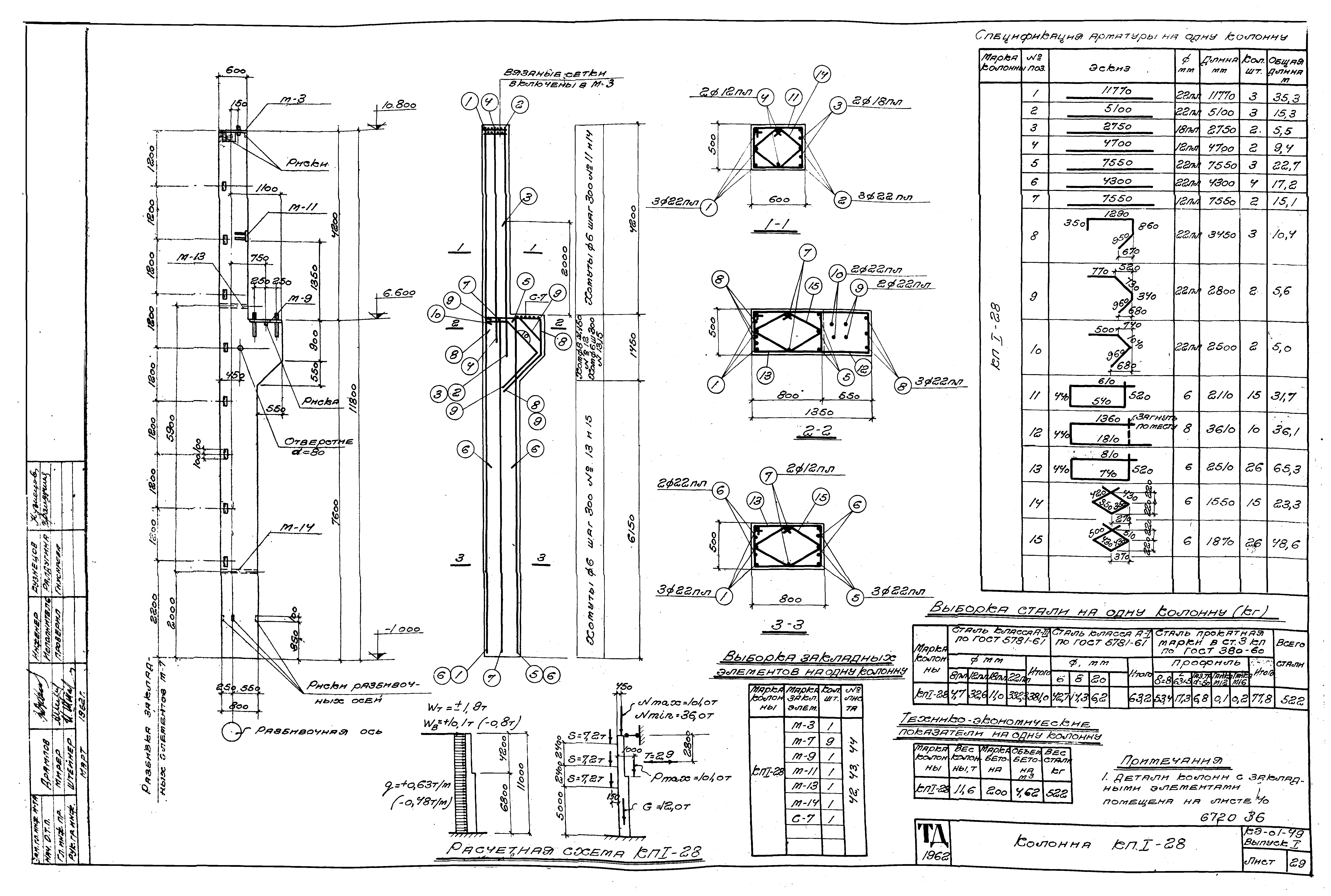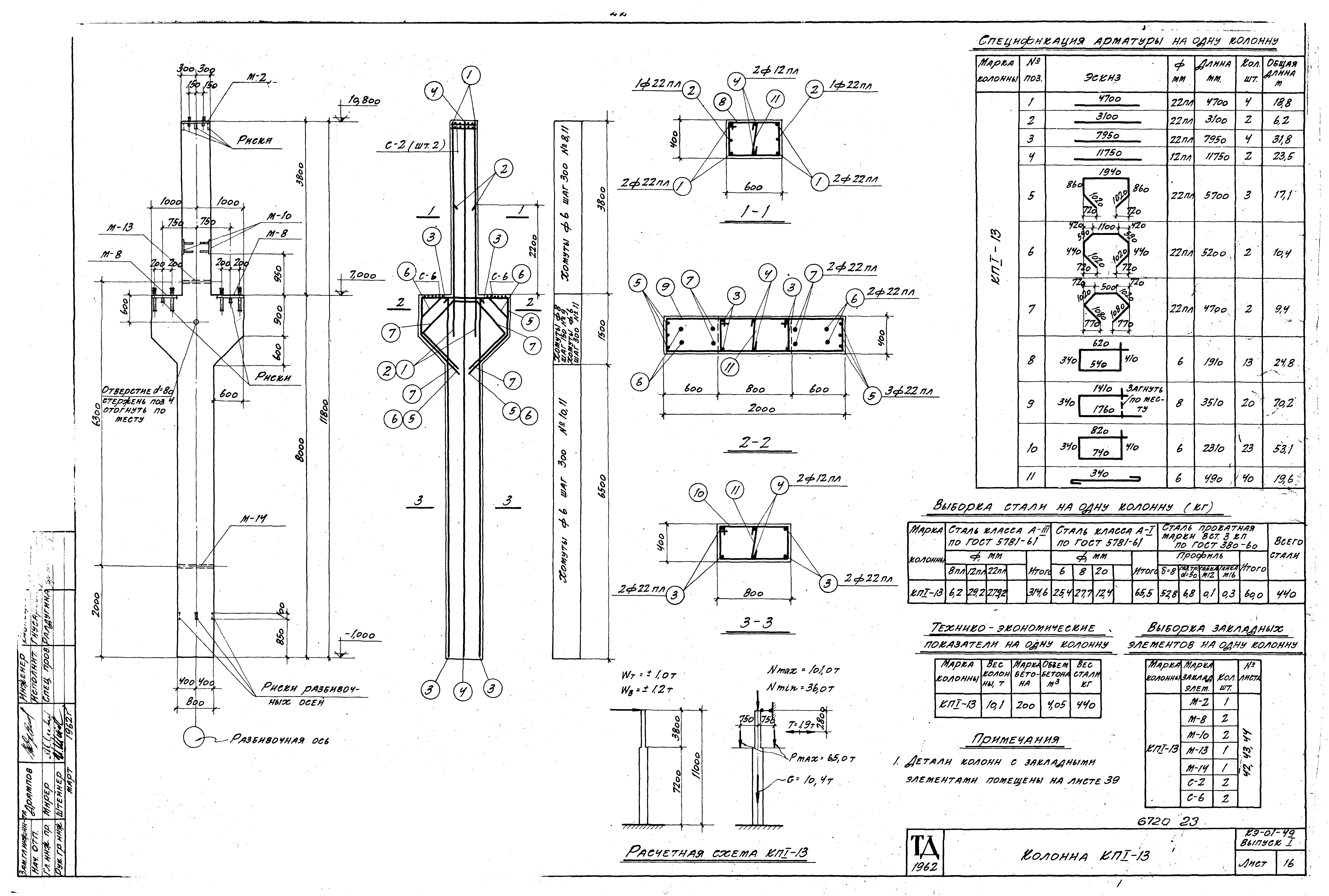 Колонны разработаны в соответствии с «Типовыми конструкциями зданий для промышленного строительства», утвержденными Госстроем СССР приказом №490 от 15 сентября 1961 г. Колонны рассчитаны на нагрузки в соответствии с главой СНиП II-А.11-62 «Нагрузки и воздействия».
