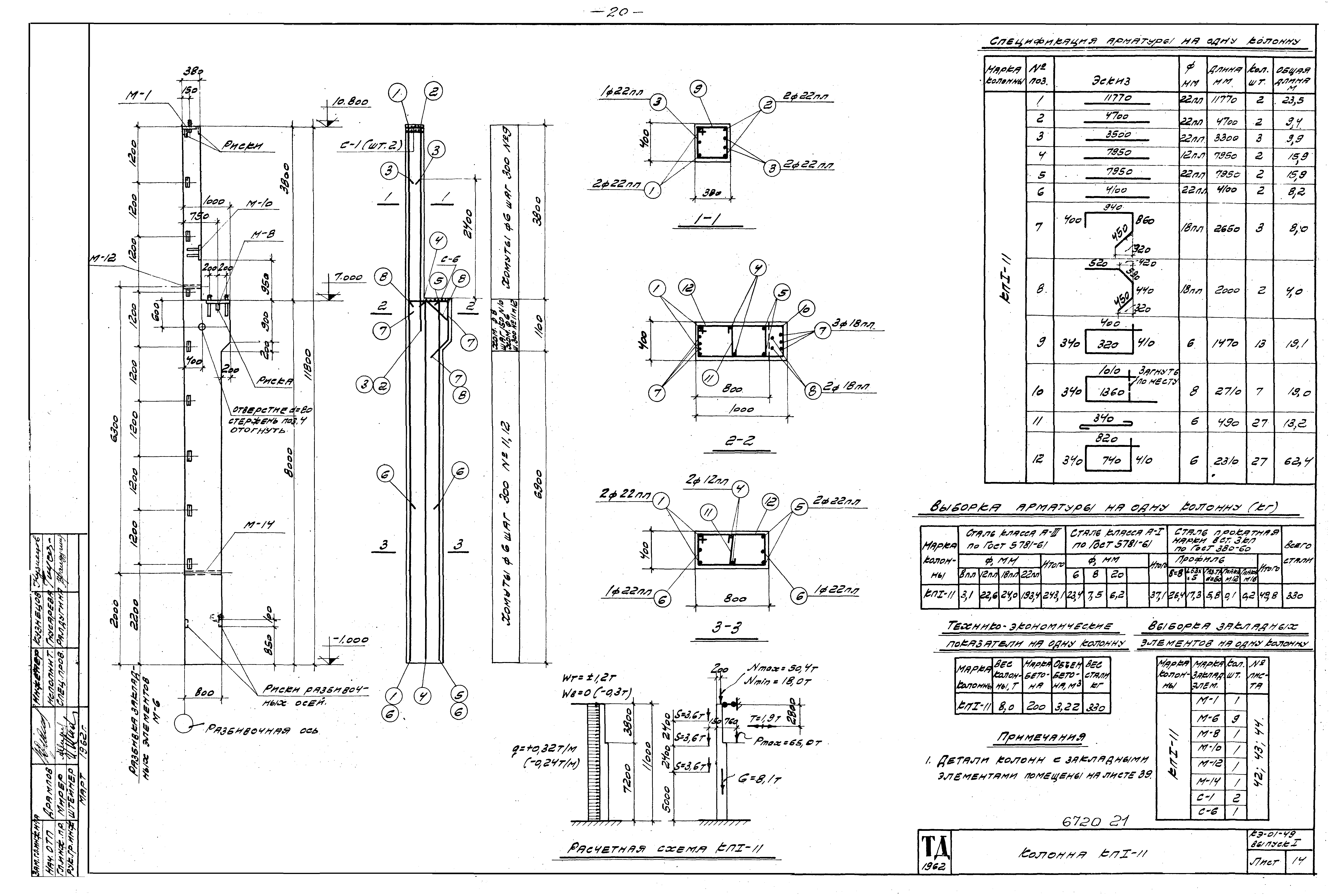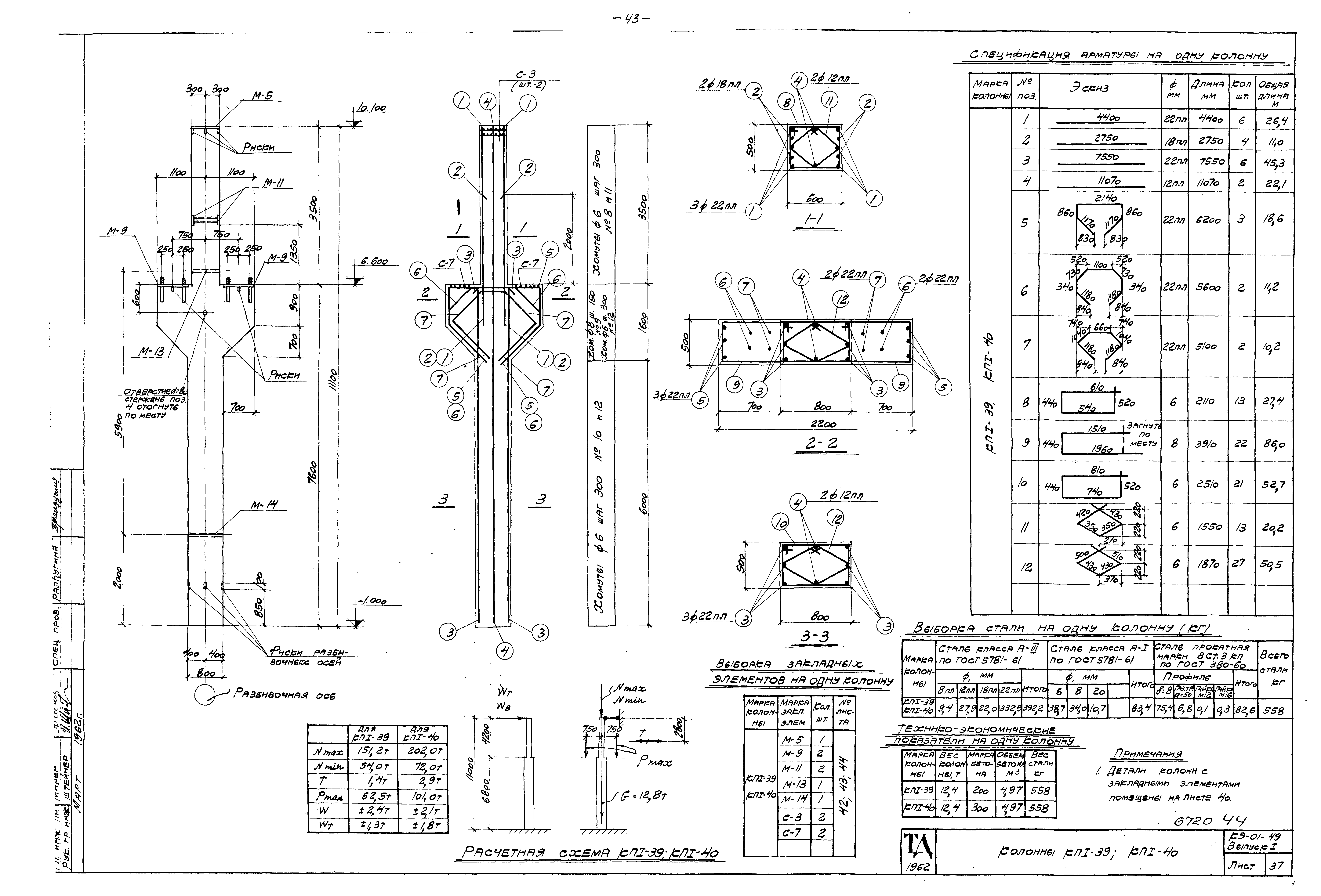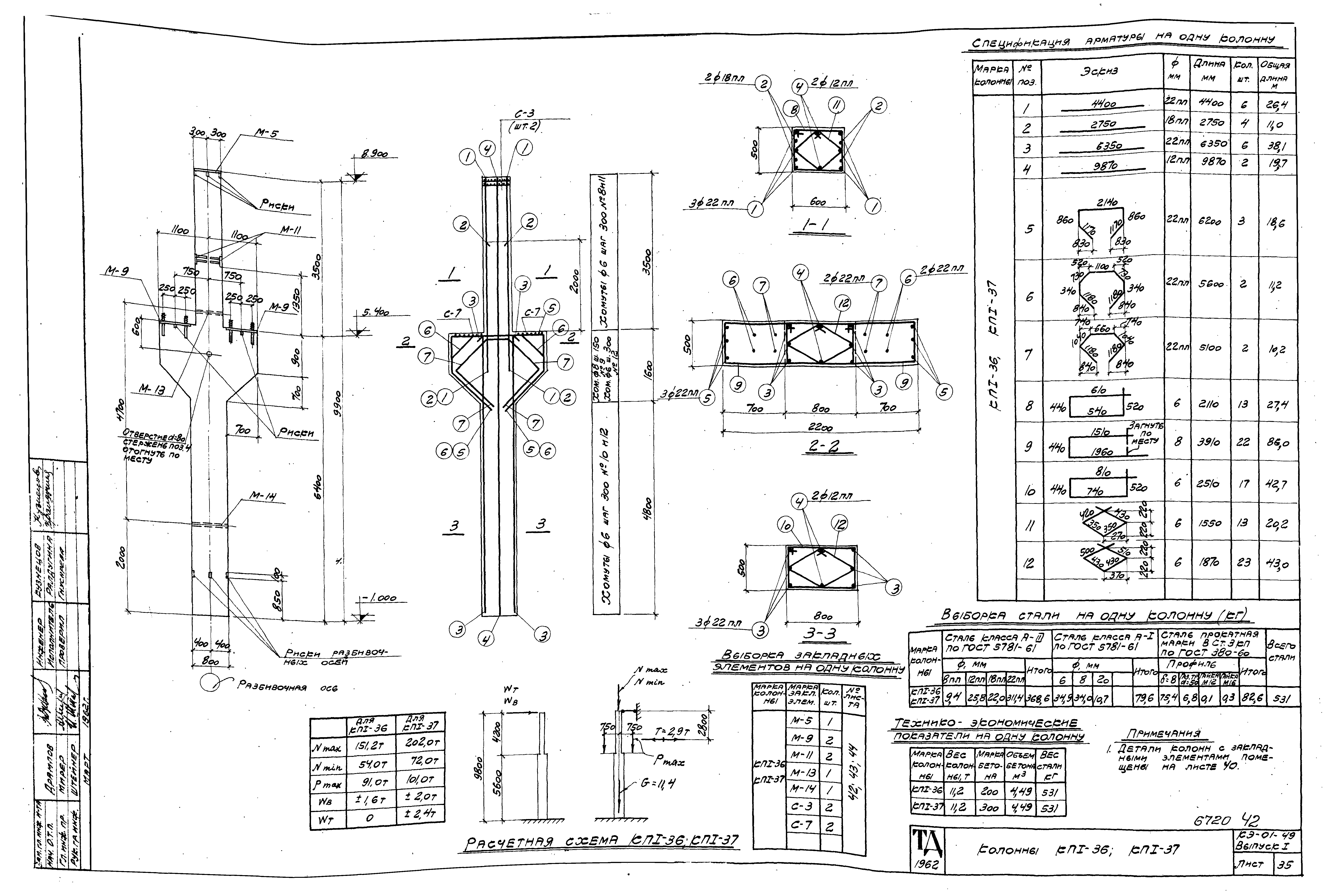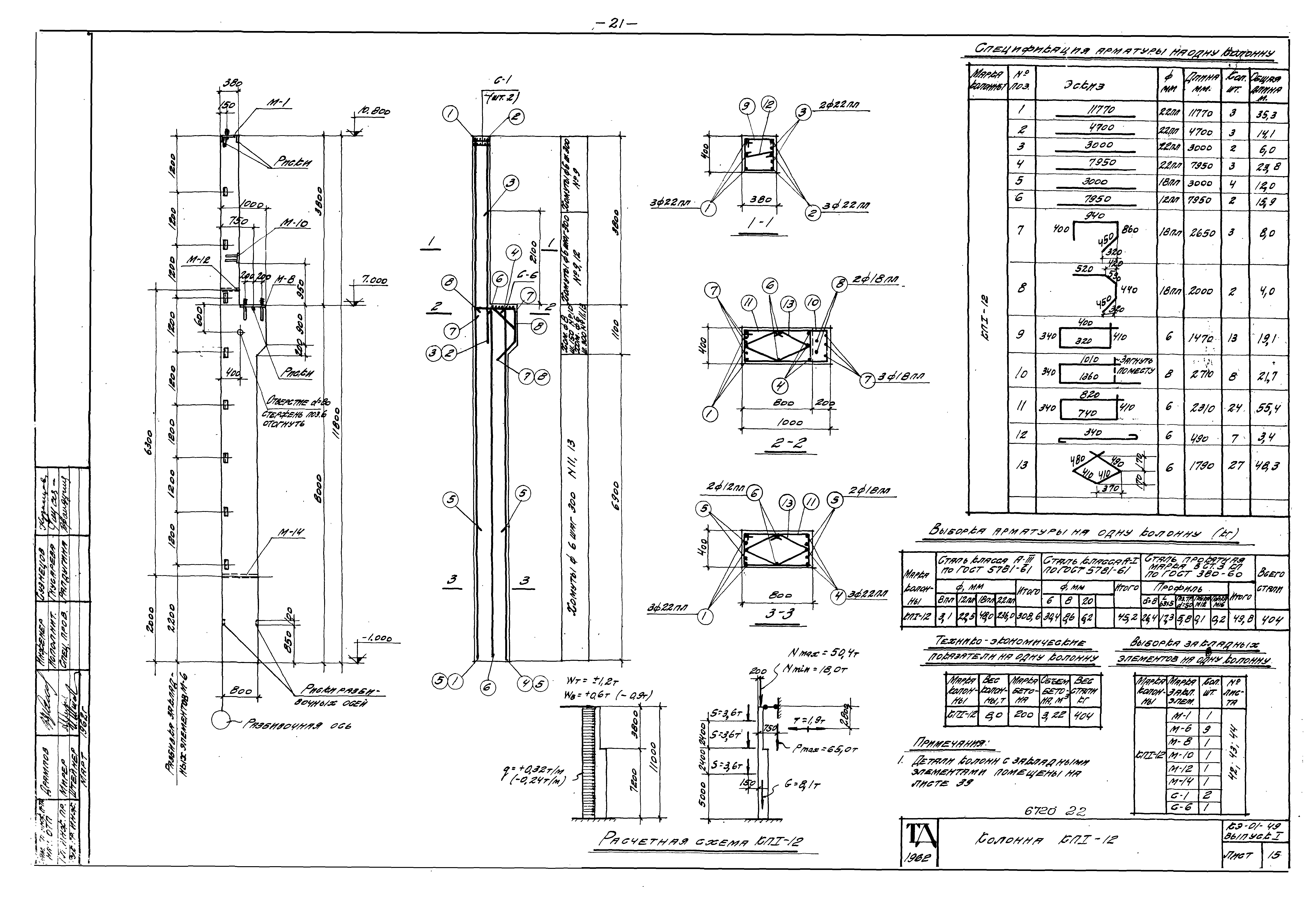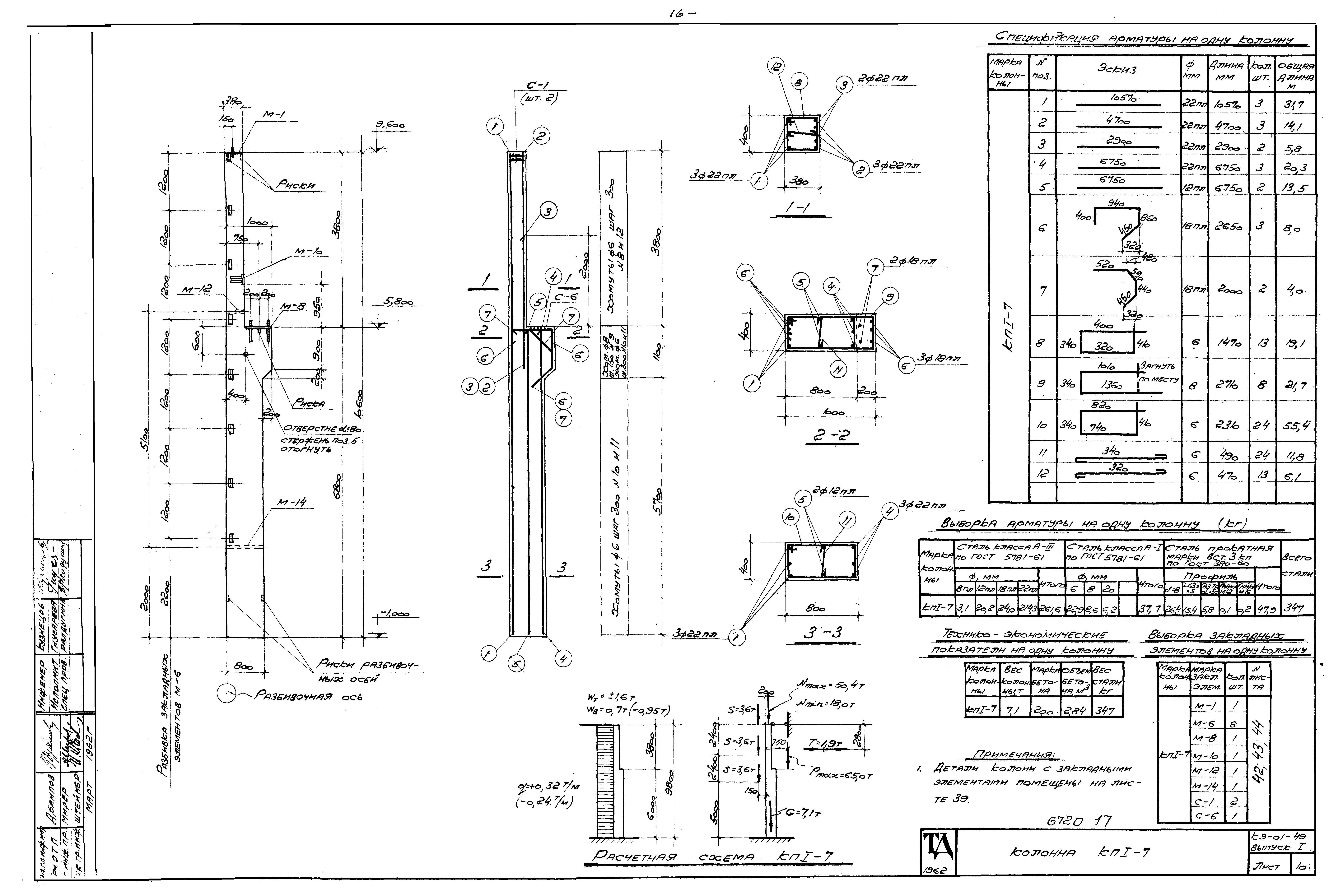 Колонны разработаны в соответствии с «Типовыми конструкциями зданий для промышленного строительства», утвержденными Госстроем СССР приказом №490 от 15 сентября 1961 г. Колонны рассчитаны на нагрузки в соответствии с главой СНиП II-А.11-62 «Нагрузки и воздействия».