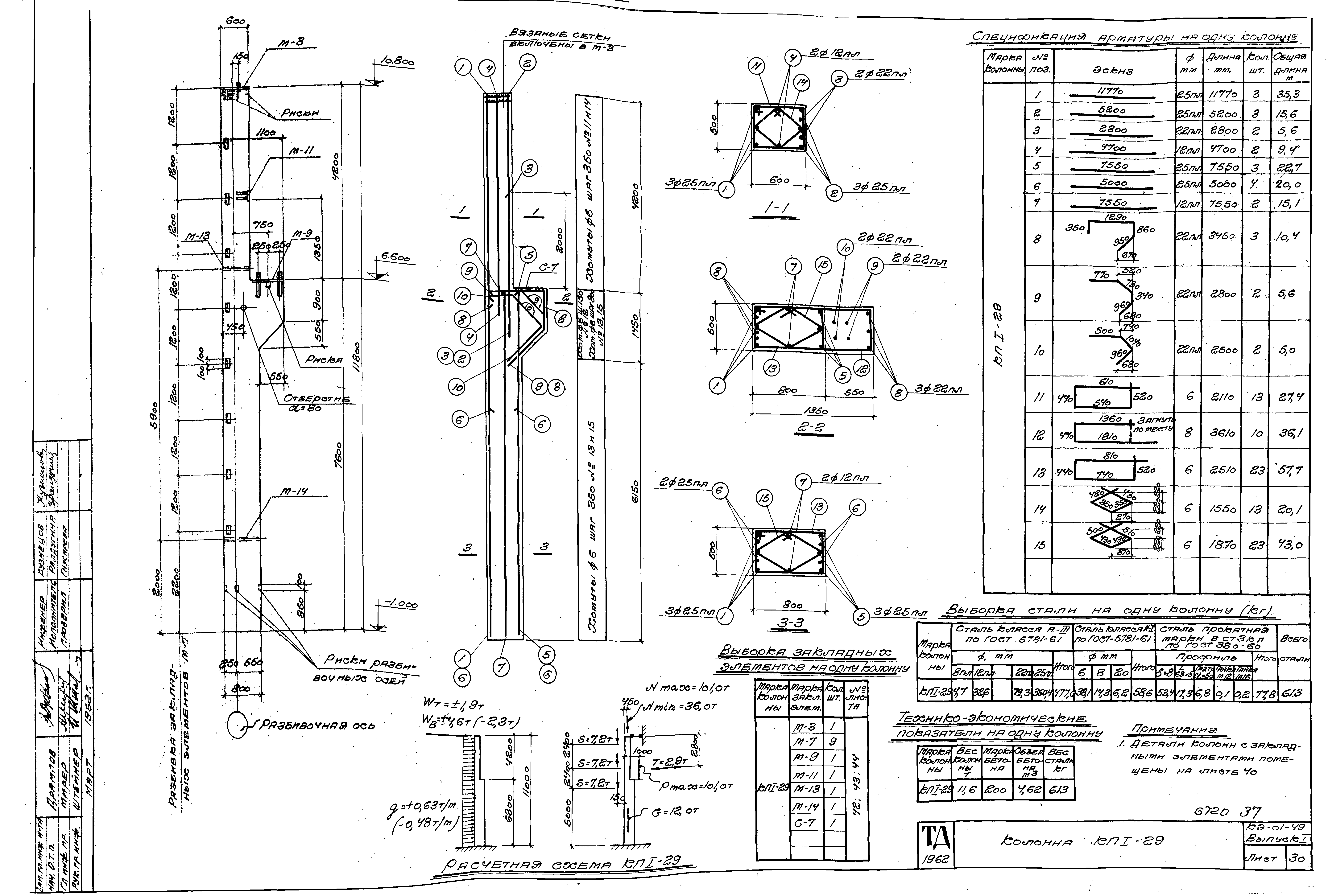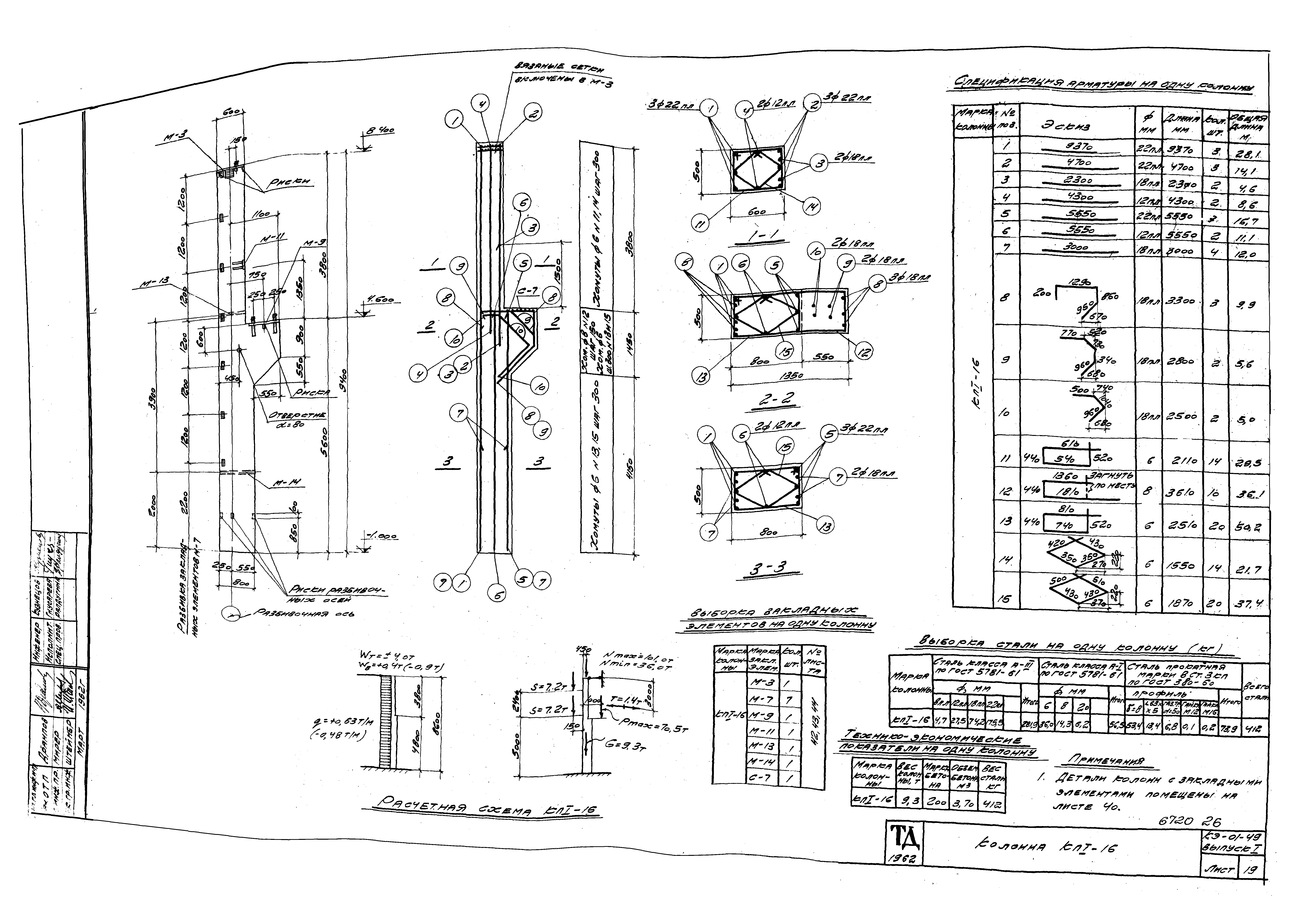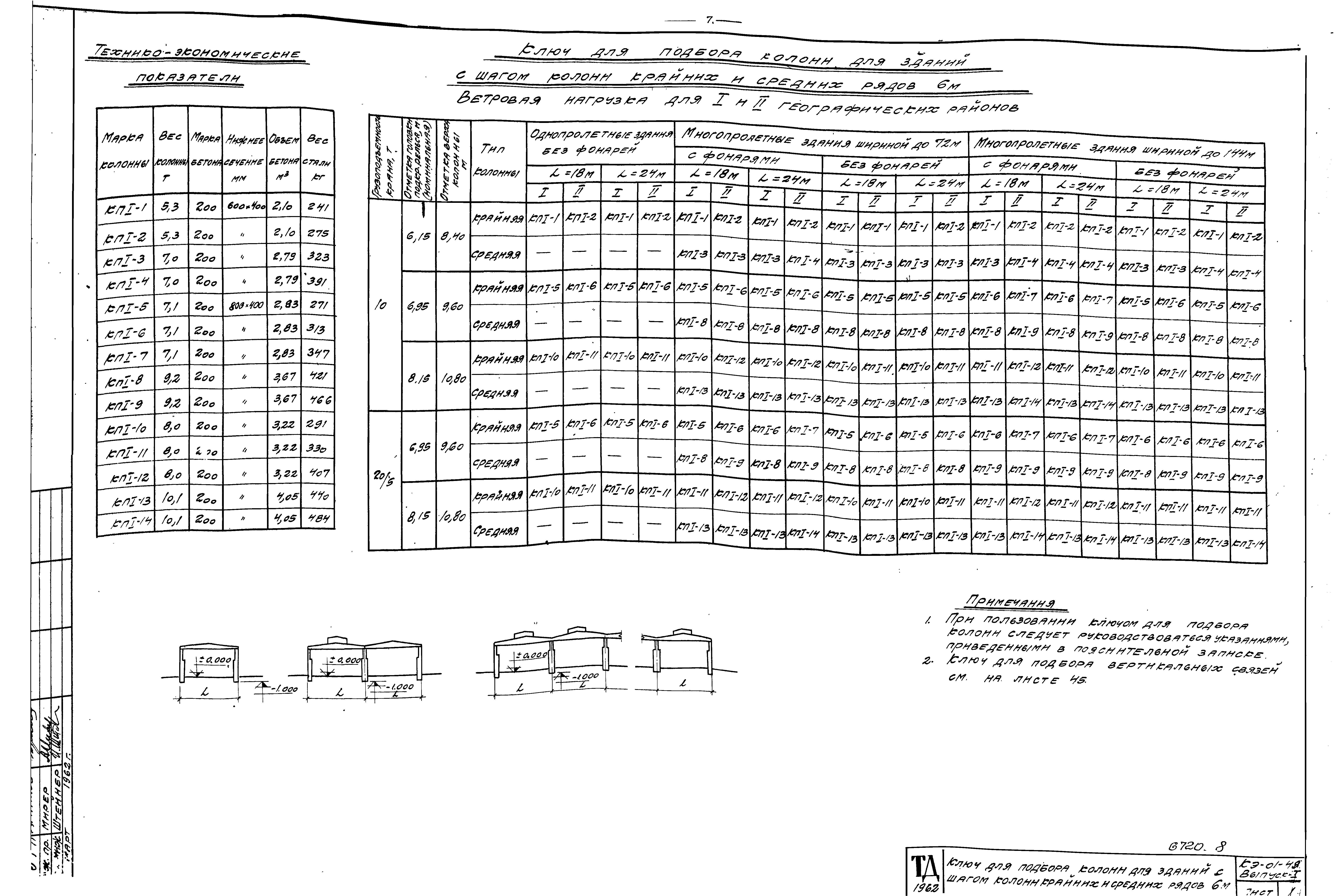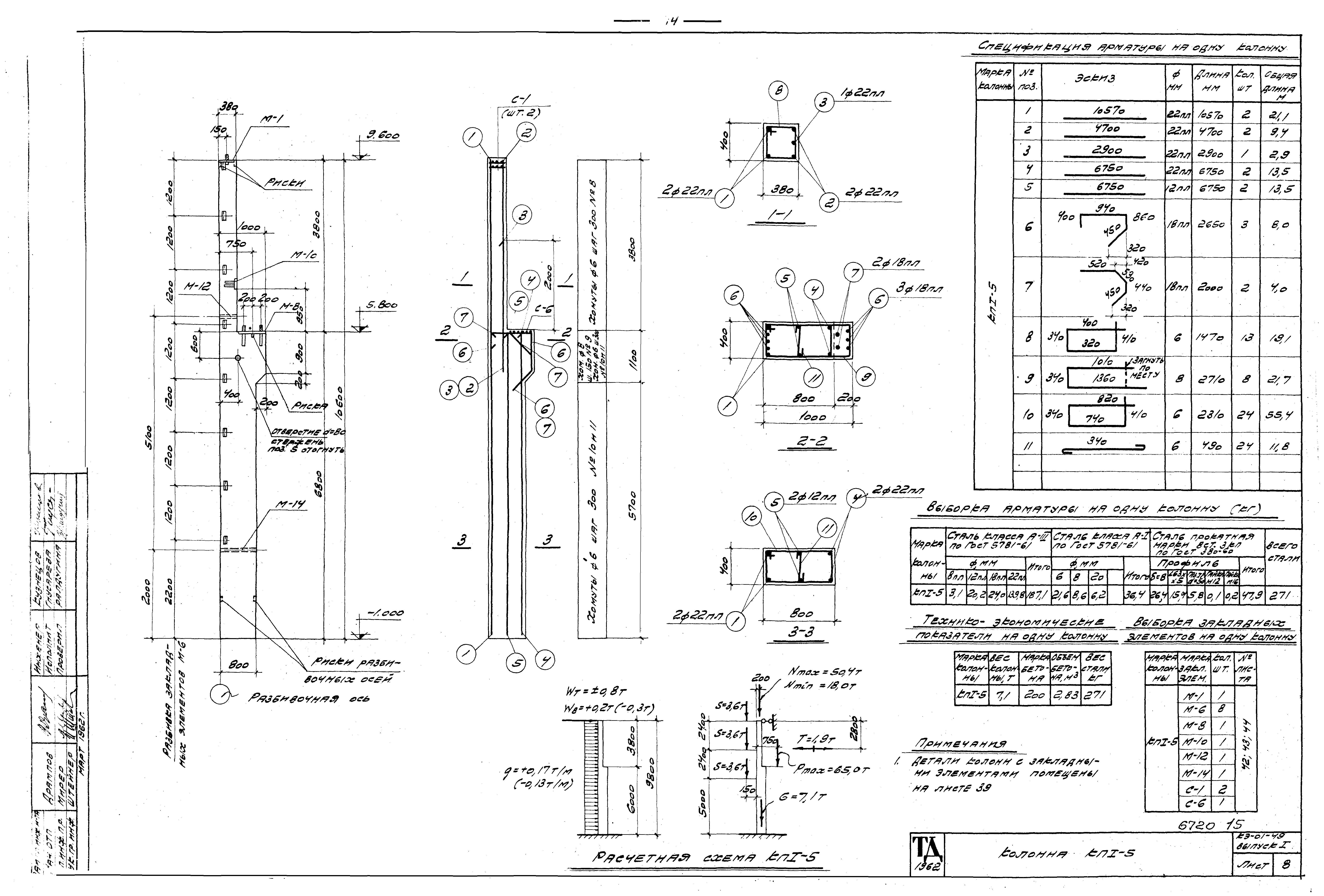 Колонны разработаны в соответствии с «Типовыми конструкциями зданий для промышленного строительства», утвержденными Госстроем СССР приказом №490 от 15 сентября 1961 г. Колонны рассчитаны на нагрузки в соответствии с главой СНиП II-А.11-62 «Нагрузки и воздействия».