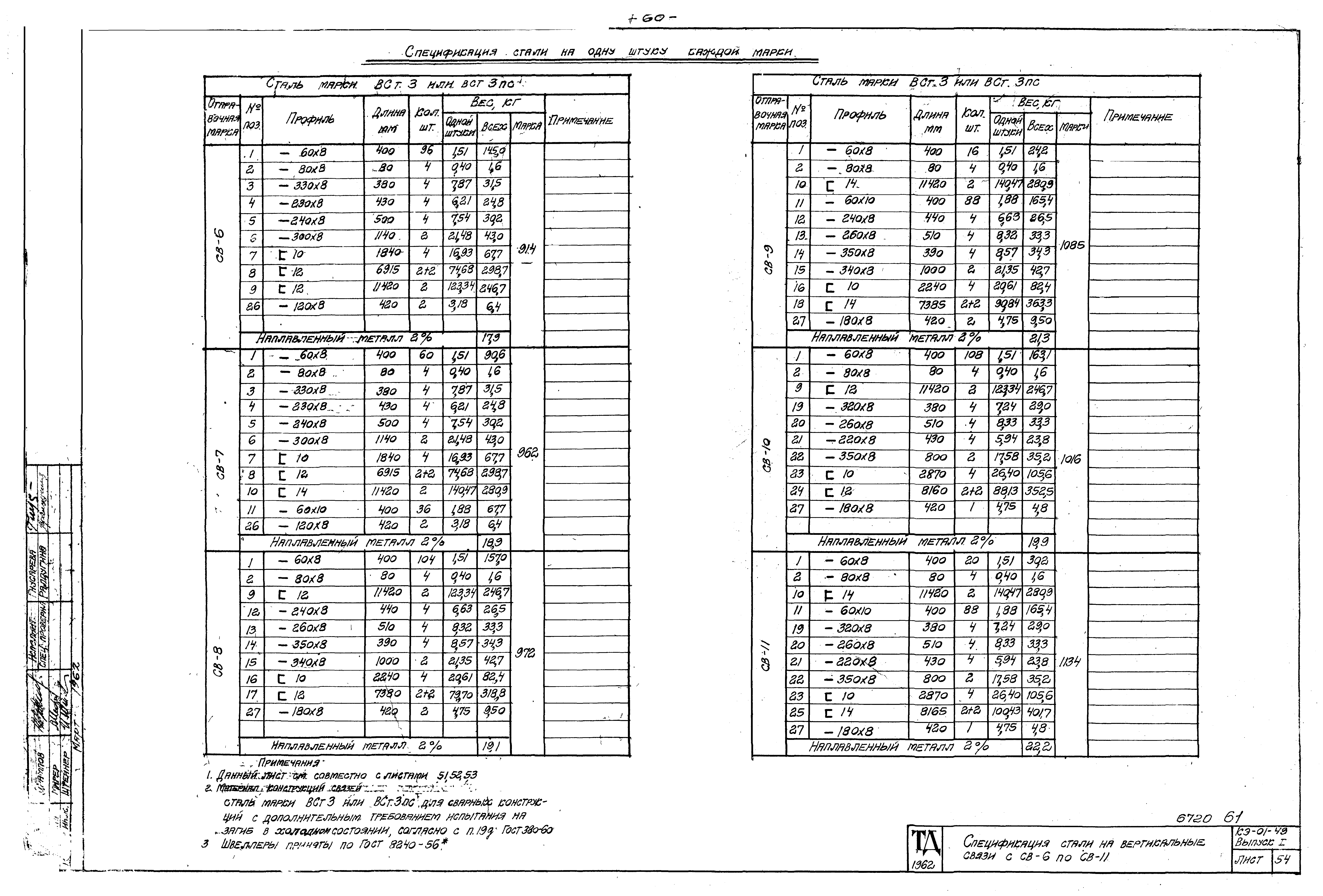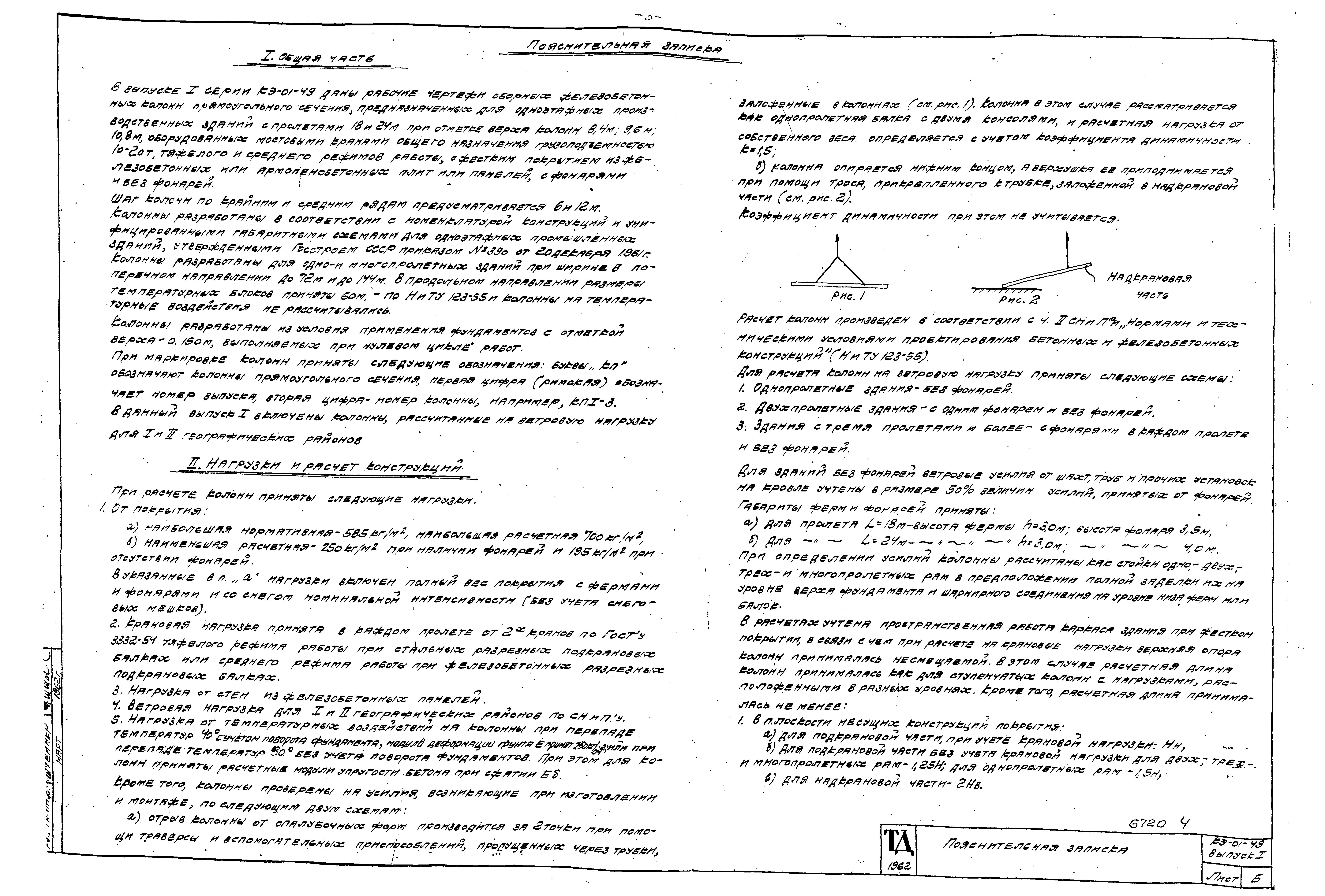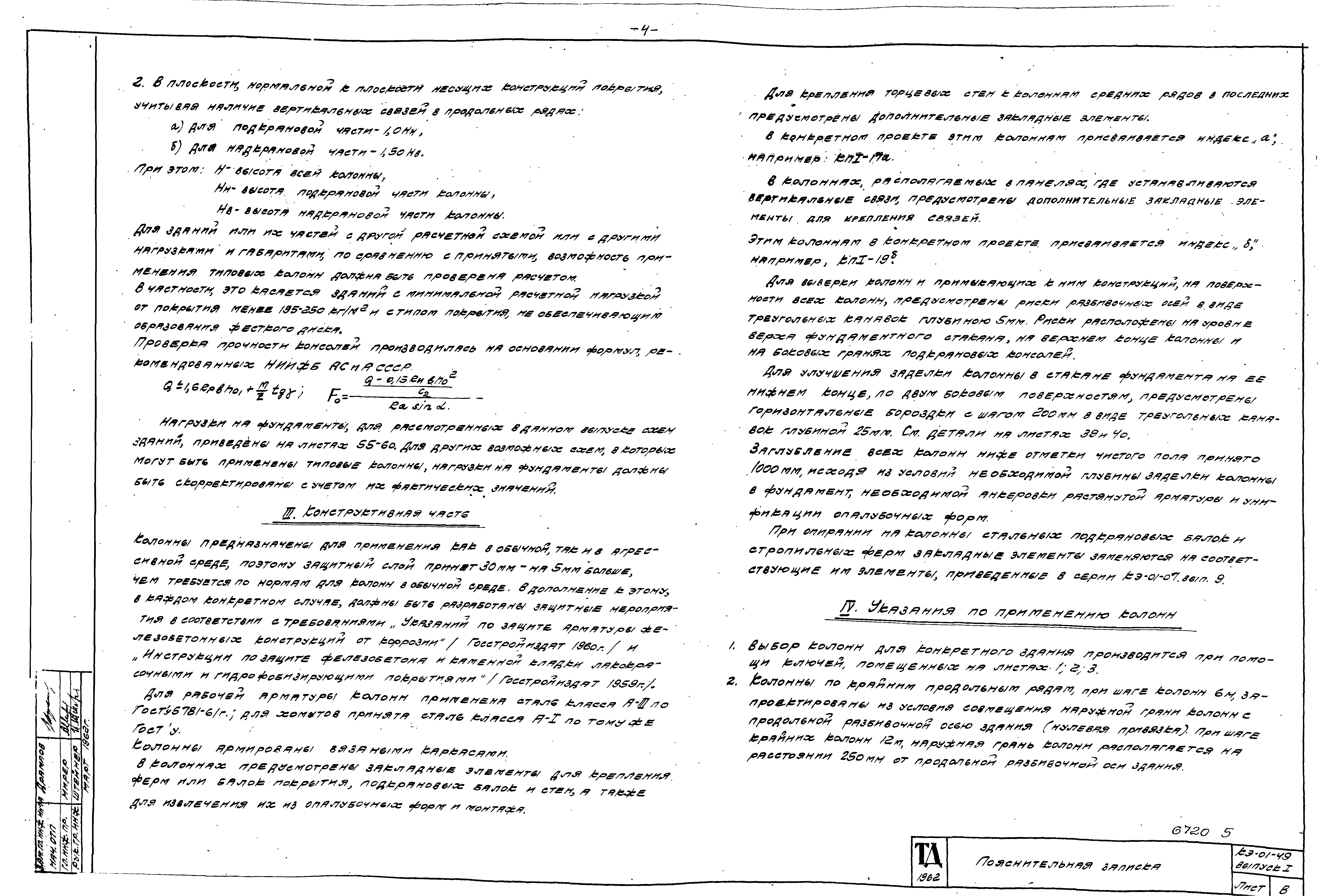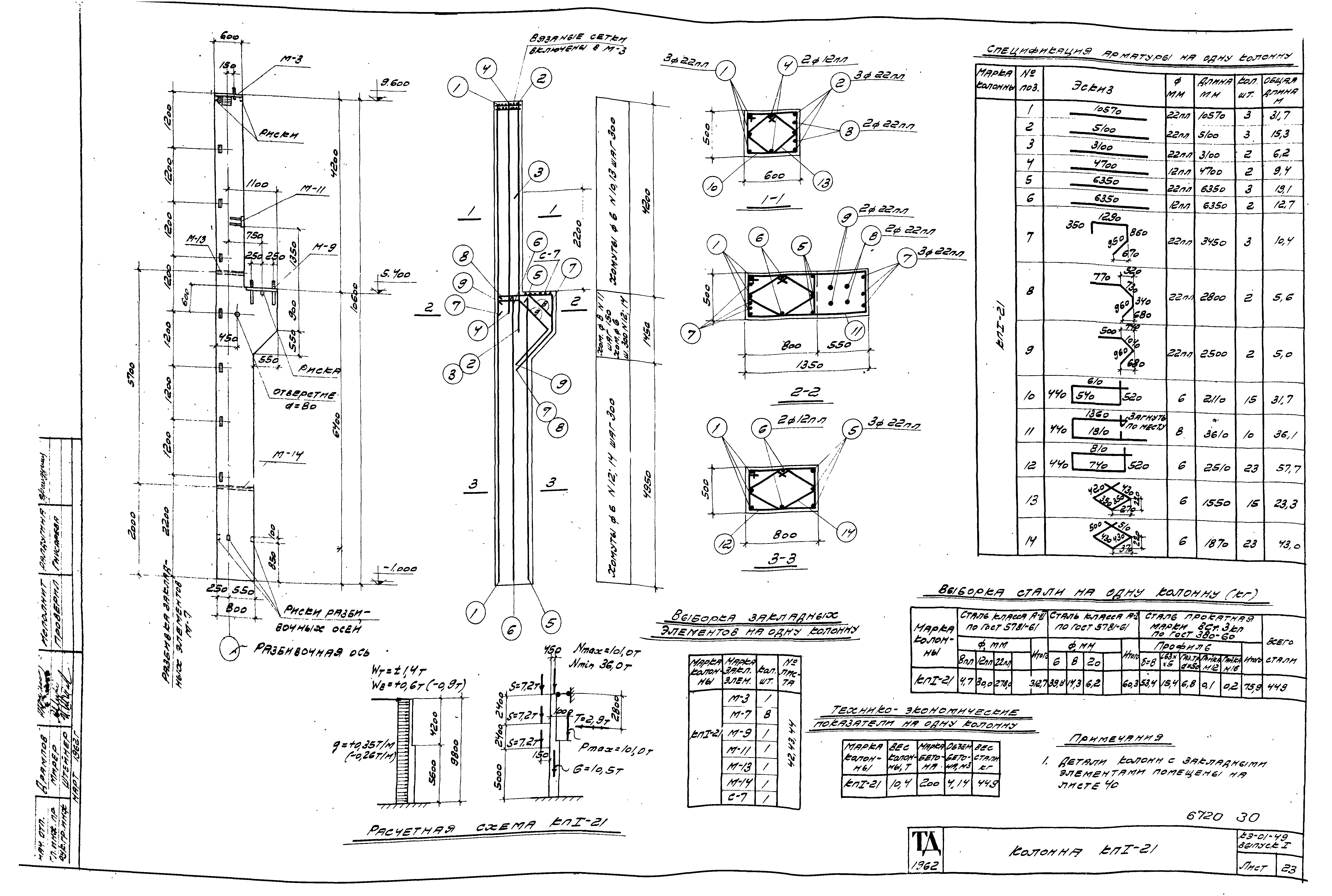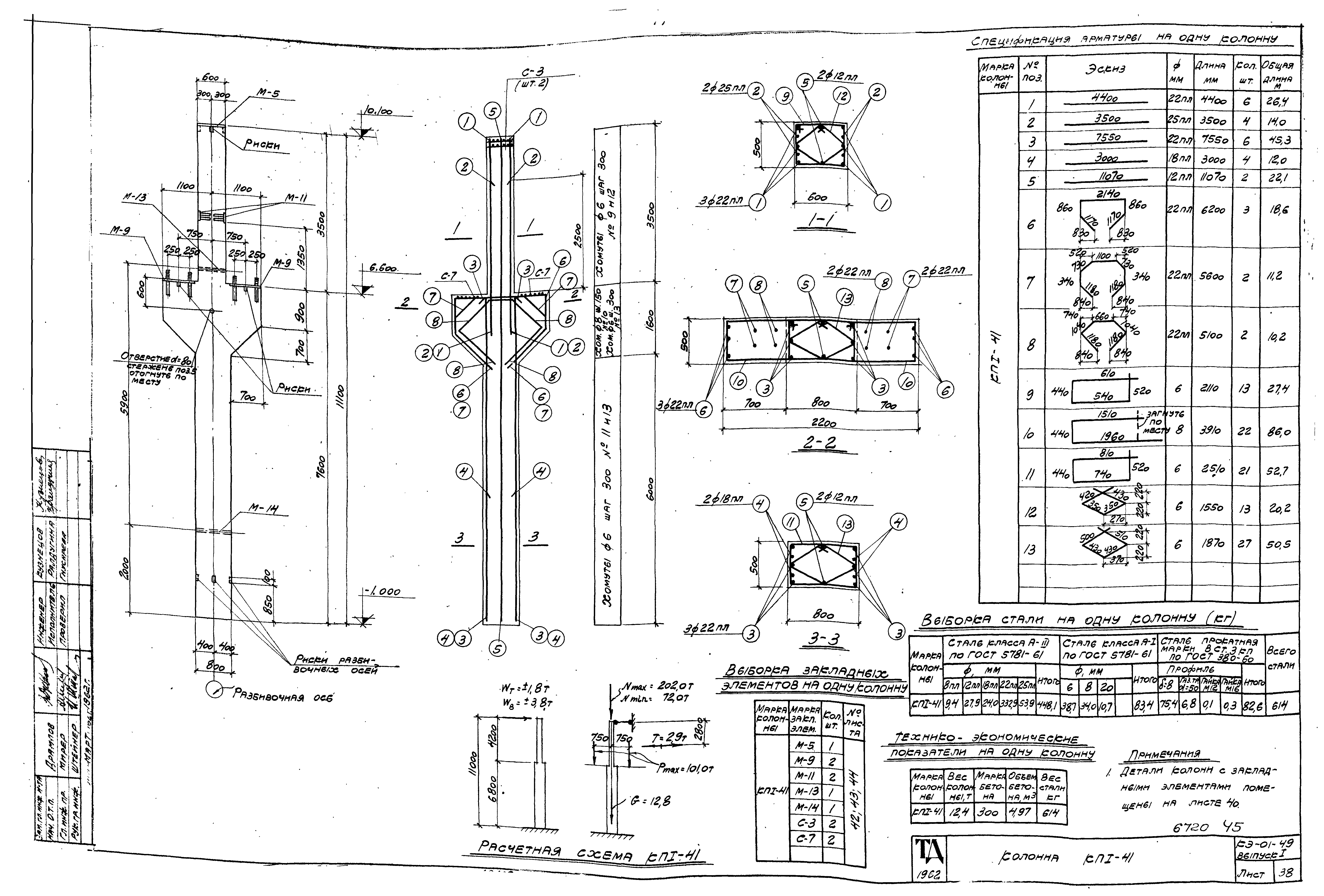 Колонны разработаны в соответствии с «Типовыми конструкциями зданий для промышленного строительства», утвержденными Госстроем СССР приказом №490 от 15 сентября 1961 г. Колонны рассчитаны на нагрузки в соответствии с главой СНиП II-А.11-62 «Нагрузки и воздействия».
