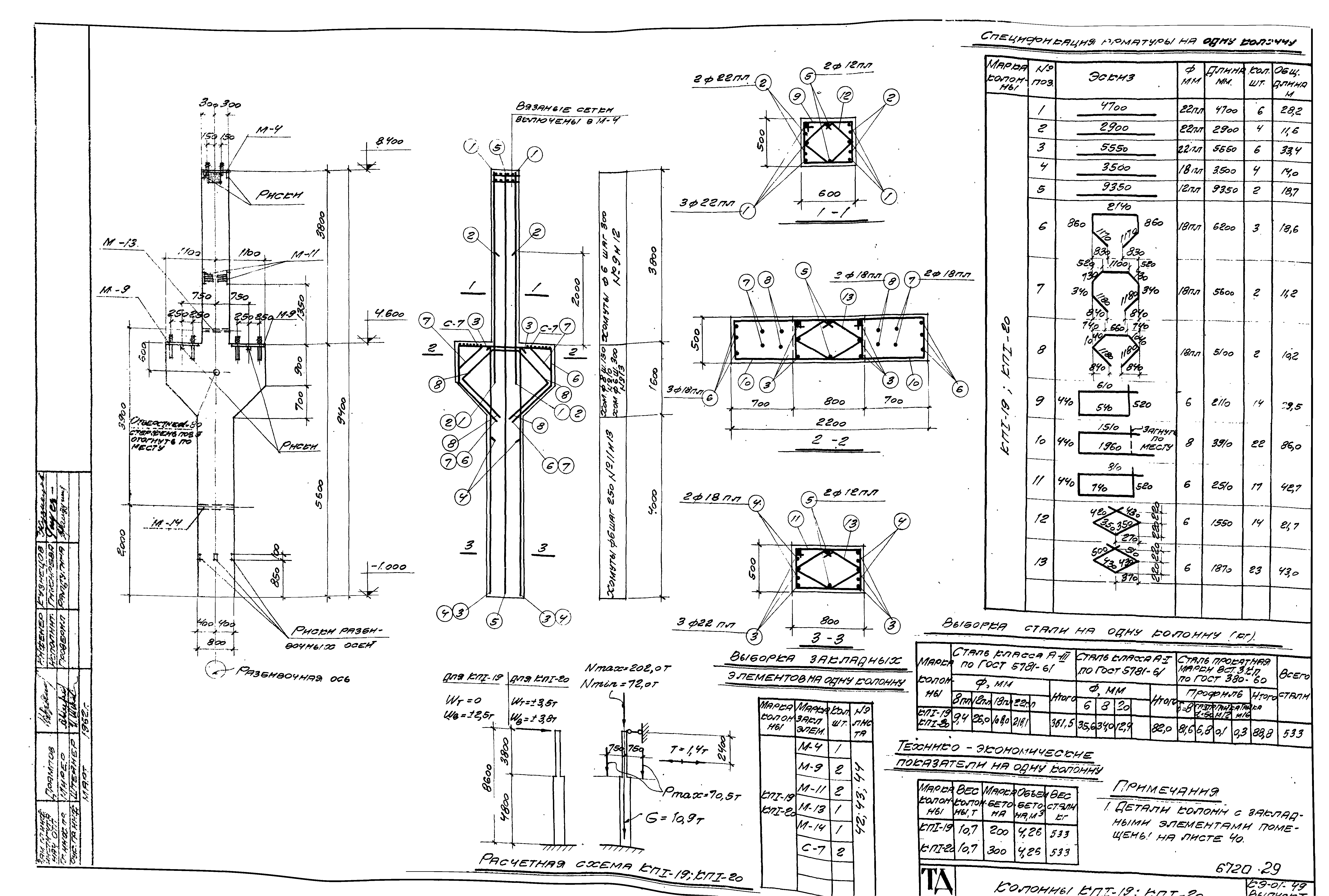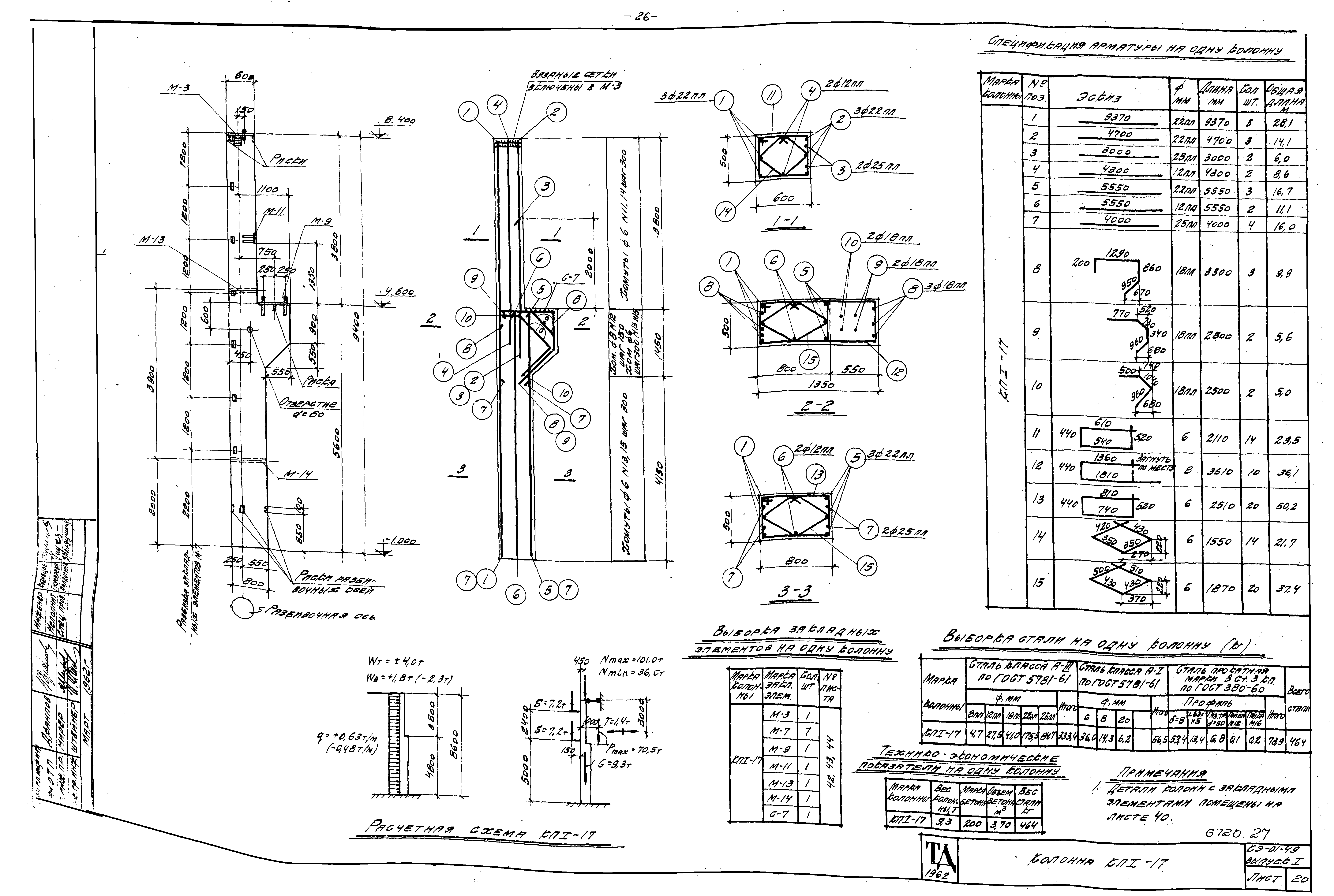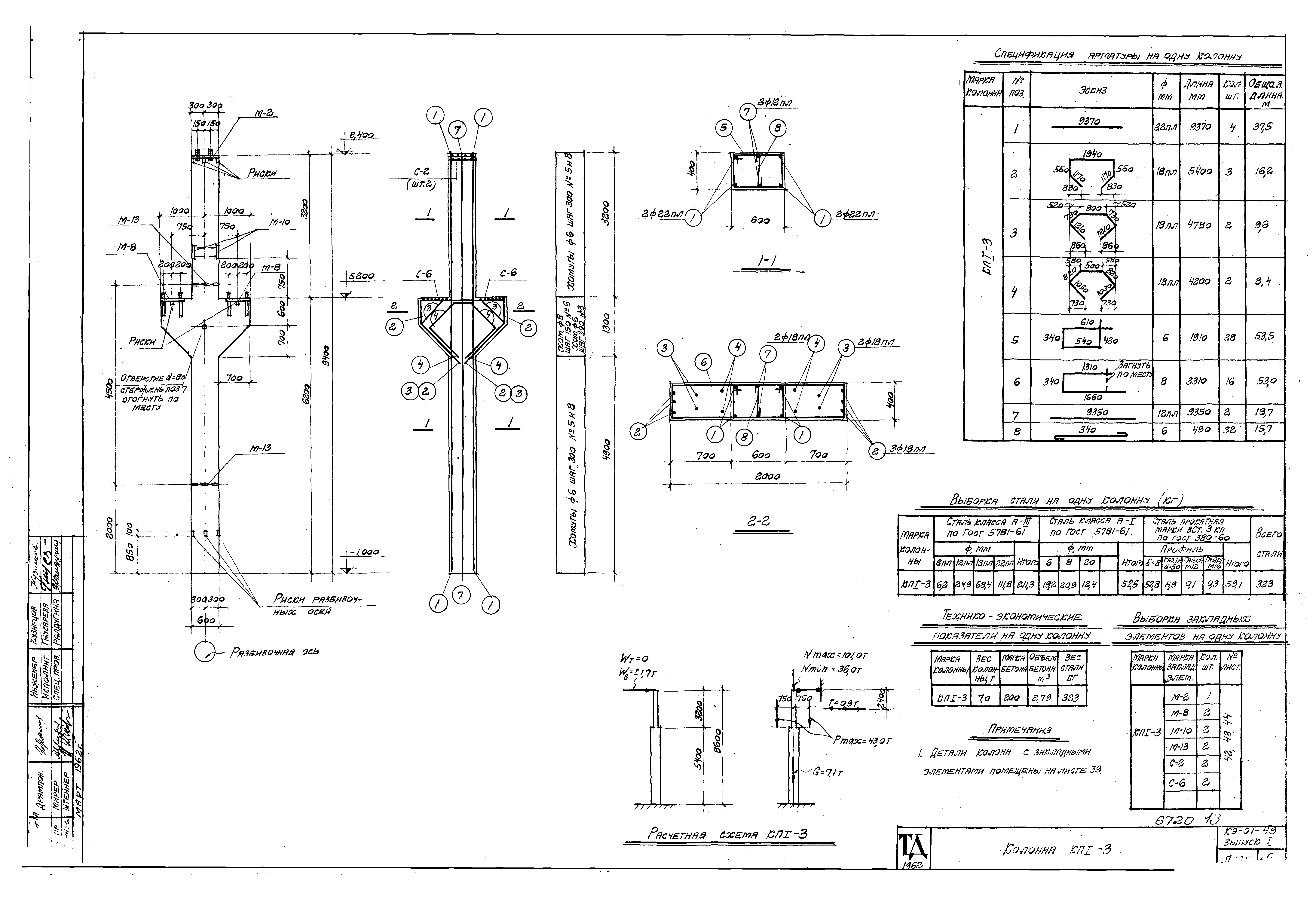 Расчет колонн произведен с учетом коэффициентов перегрузки, принятых в нормах проектирования. При подборе колонн следует учитывать, что в местах примыкания вертикальных связей к колоннам предусмотрены дополнительные закладные элементы.