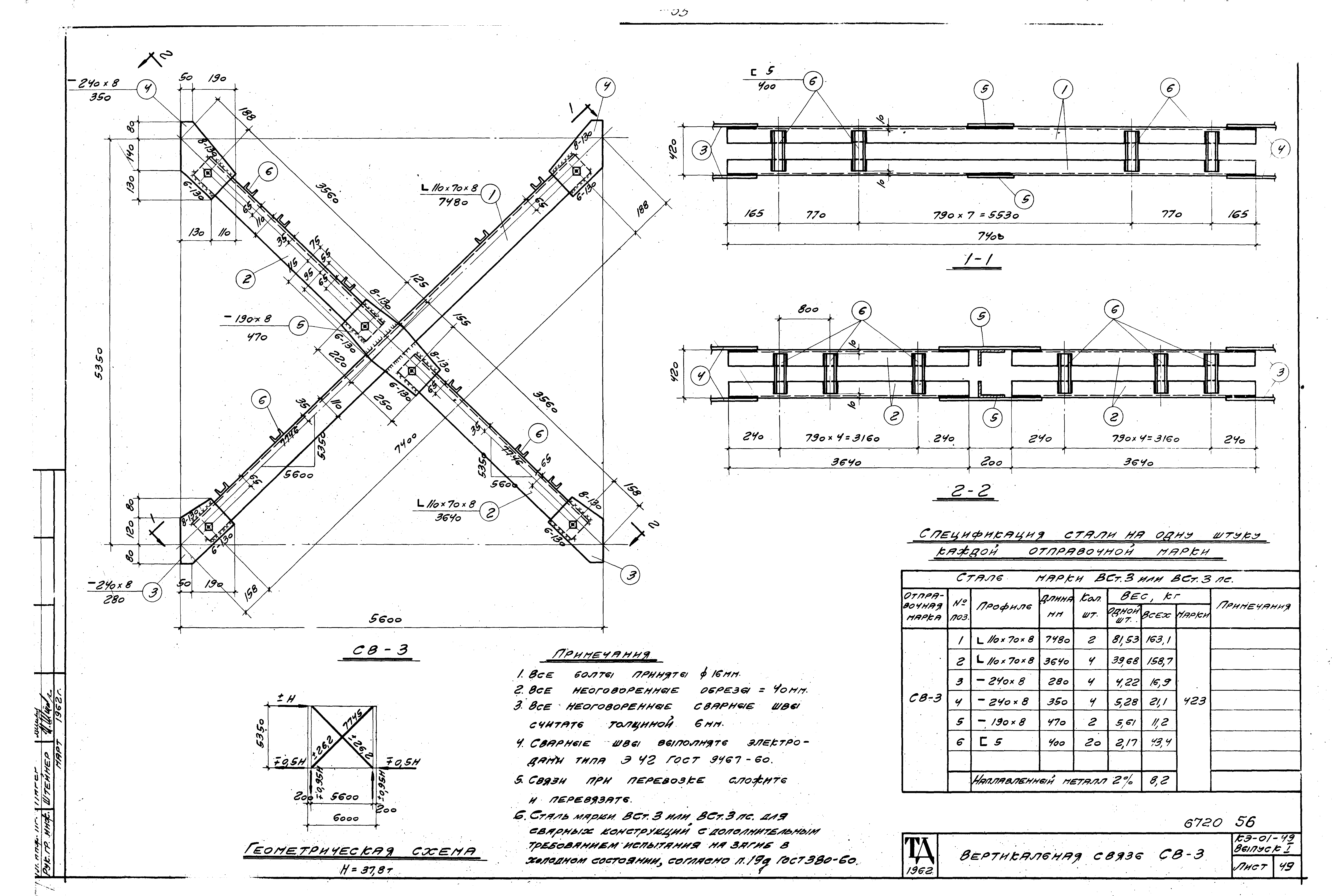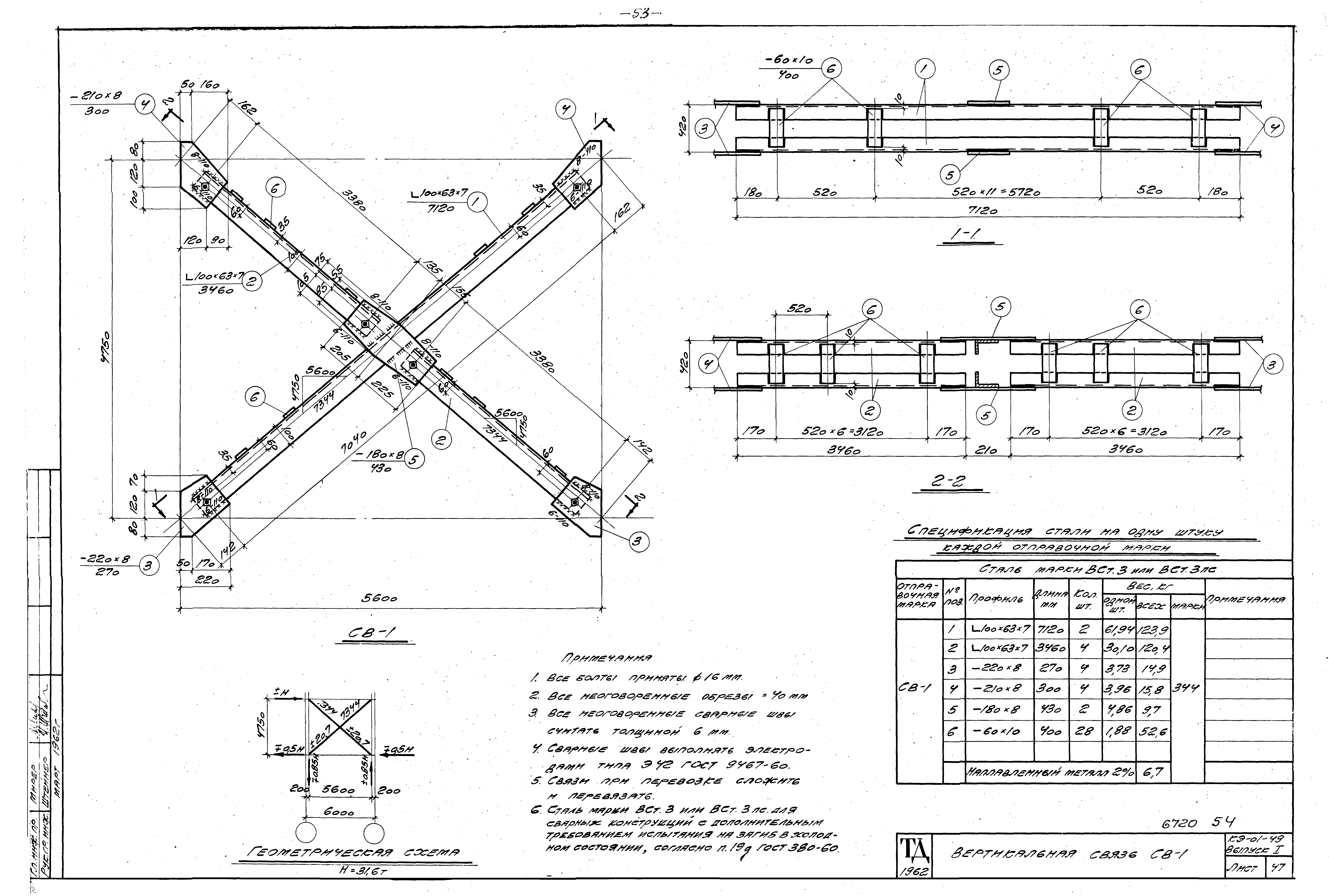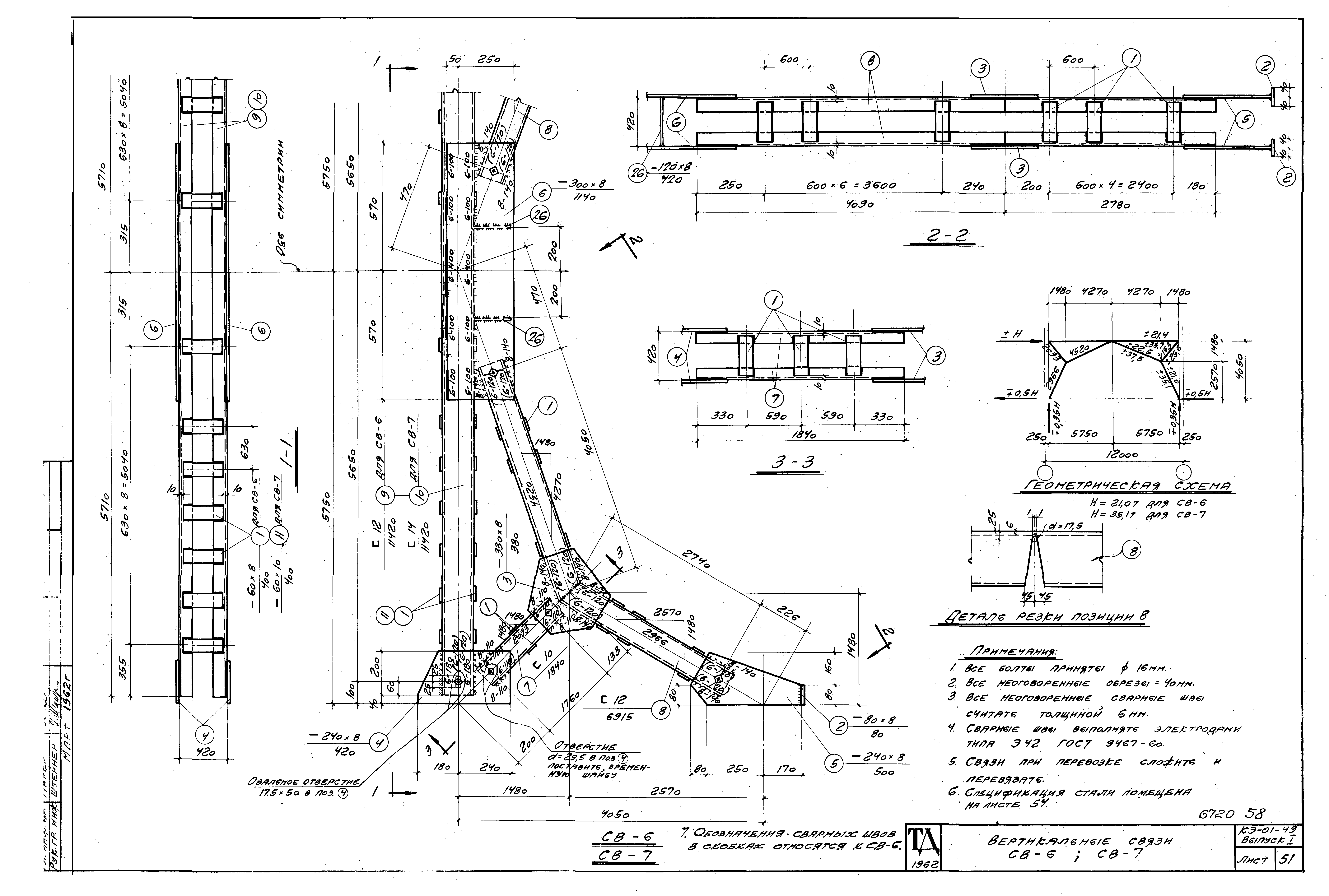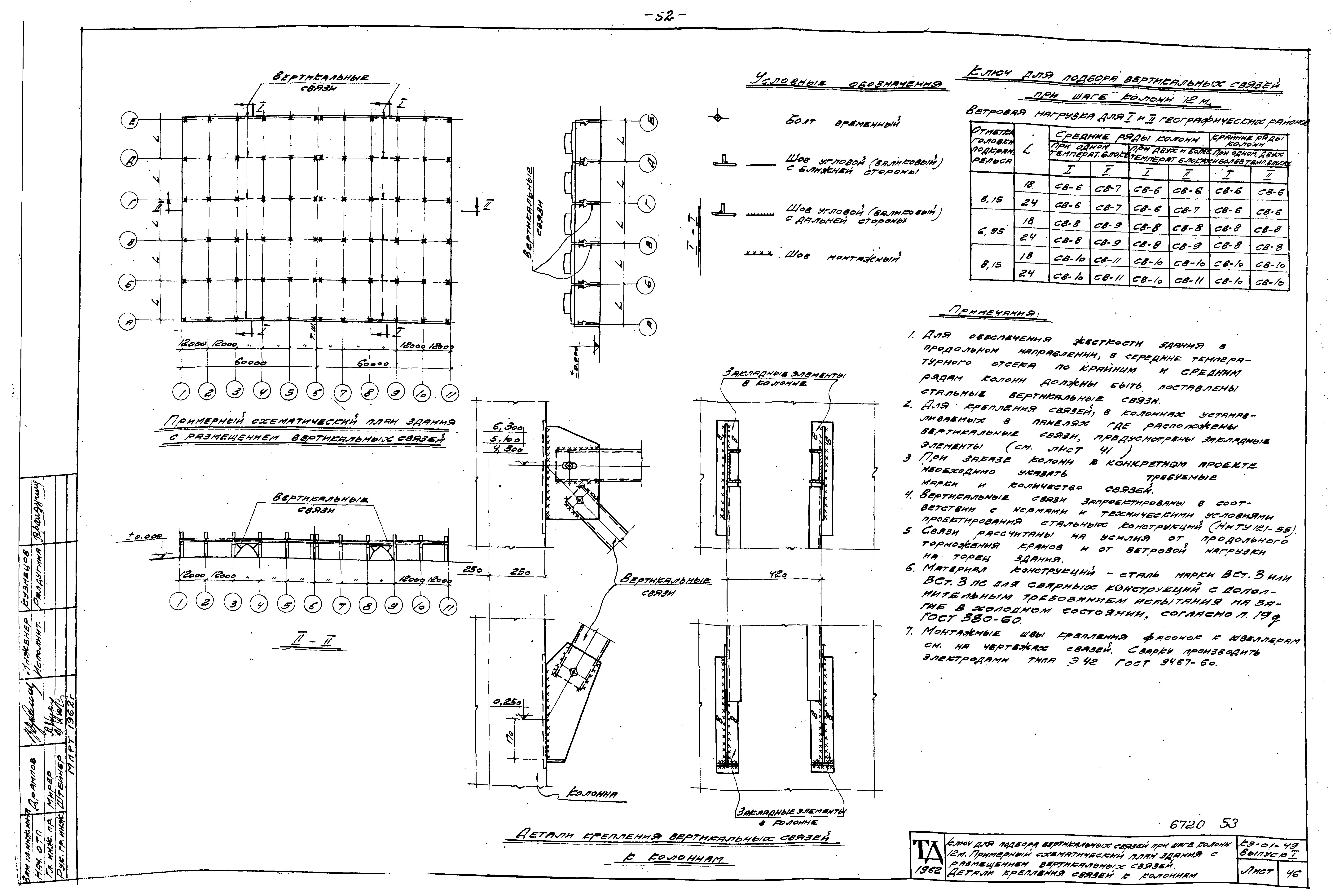 Расчет колонн произведен с учетом коэффициентов перегрузки, принятых в нормах проектирования. При подборе колонн следует учитывать, что в местах примыкания вертикальных связей к колоннам предусмотрены дополнительные закладные элементы.