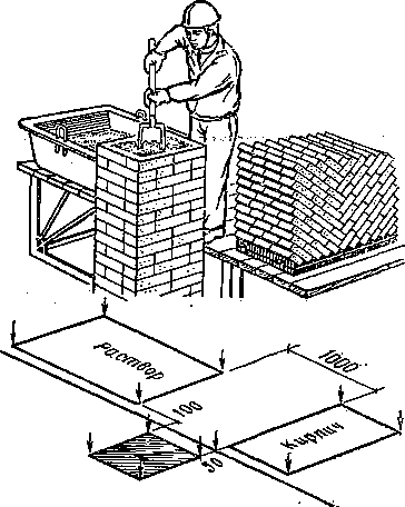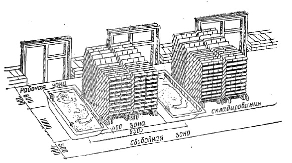 - доставлен на подмости кирпич в количестве, необходимом для двухчасовой работы;