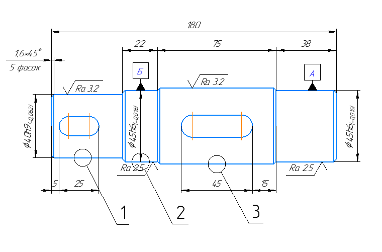 По ГОСТ 18360-93 находим верхнее и нижнее предельные отклонения: dmax = 45,000 мм; dmin = 44,984 мм.