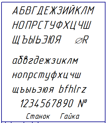 В учебных чертежах по инженерной графике применяется шрифт типа Б с наклоном.