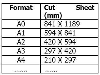 Формат A0 имеет площадь 1 м² и размеры 841 х 1189 мм. Основные форматы получают из А0 путем деления на две равные части параллельно меньшей стороне.
