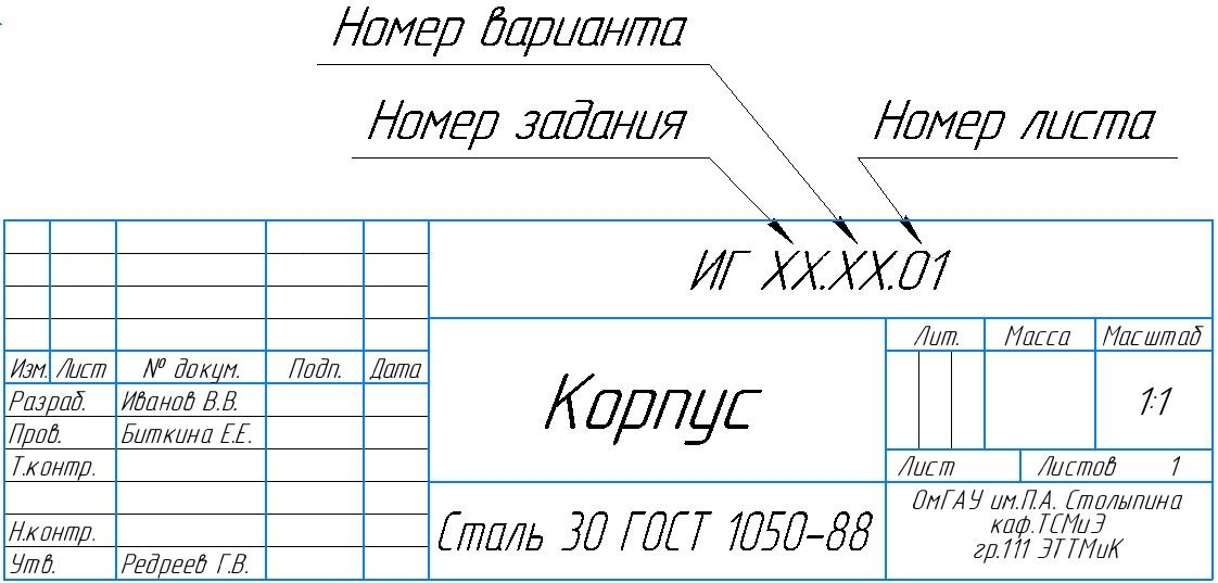 - 2 – № группы (Единая система конструкторской документации — ЕСКД).