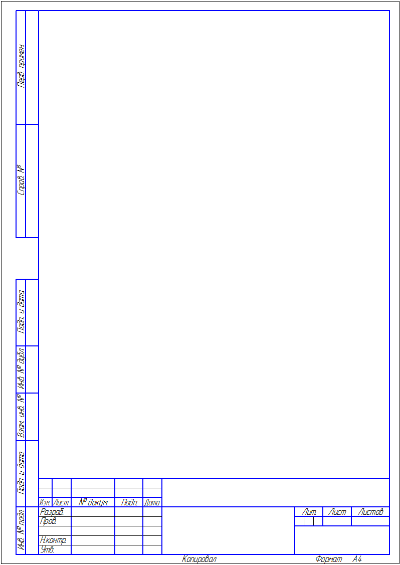 - Основной текст курсовой работы с подробным описанием расчётов и графических построений, который выполняется на листах с рамочкой по форме 2 (см. ниже).