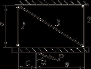 | № варианта | P, кН | a, м | в, м | c, м | α, град |