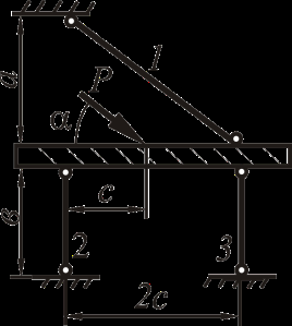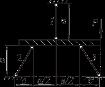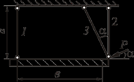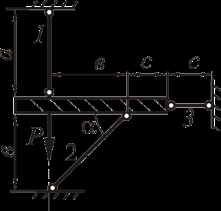 Для статически определимой стержневой системы, загруженной силой P, необходимо определить реакции связей. Высоту жёсткого бруса считать малой по сравнению с размерами конструкции и в расчётах её не учитывать.