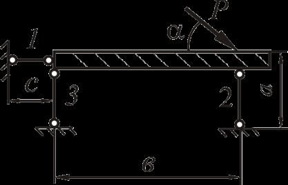 Исходные данные: P=2 кН; a=2 м; в=2,5 м; c=0,5 м.