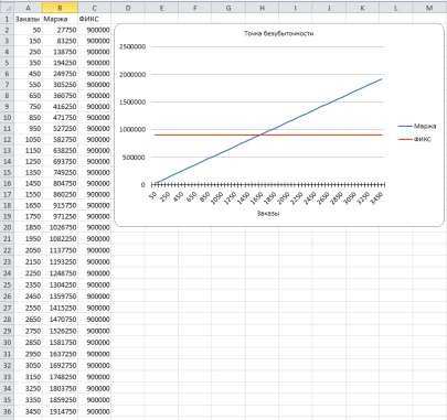 - Рассчитать точку безубыточности.