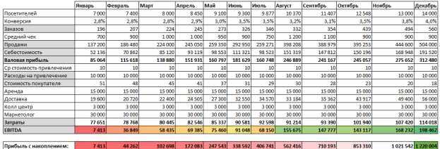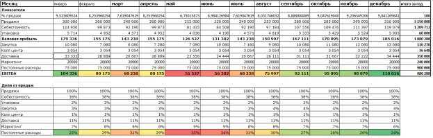 Постройте в Excel или Google Sheets бизнес-кейс для своего проекта на ближайшие несколько лет (от 2 до 5). В качестве единицы времени возьмите месяц. Требования к выполнению: