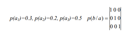 Вероятность появления сигналов на входе приемника сообщений равна соответственно р(b1)=0.2, р(b2)=0.3, р(b3)=0.5. Канал связи описан следующей канальной матрицей: [IMAGE_3]