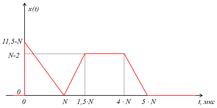 Дан периодический сигнал с периодом 7*N мкс: